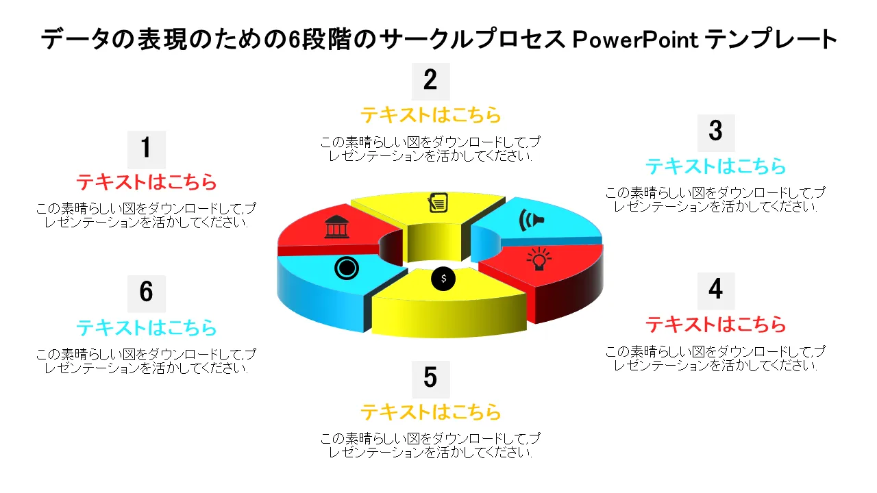0115データ表現のための6段階のサークルプロセスPowerPointのテンプレート