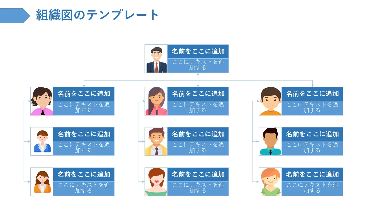 ビジネスプレゼンテーション用の組織図PowerPointのテンプレート