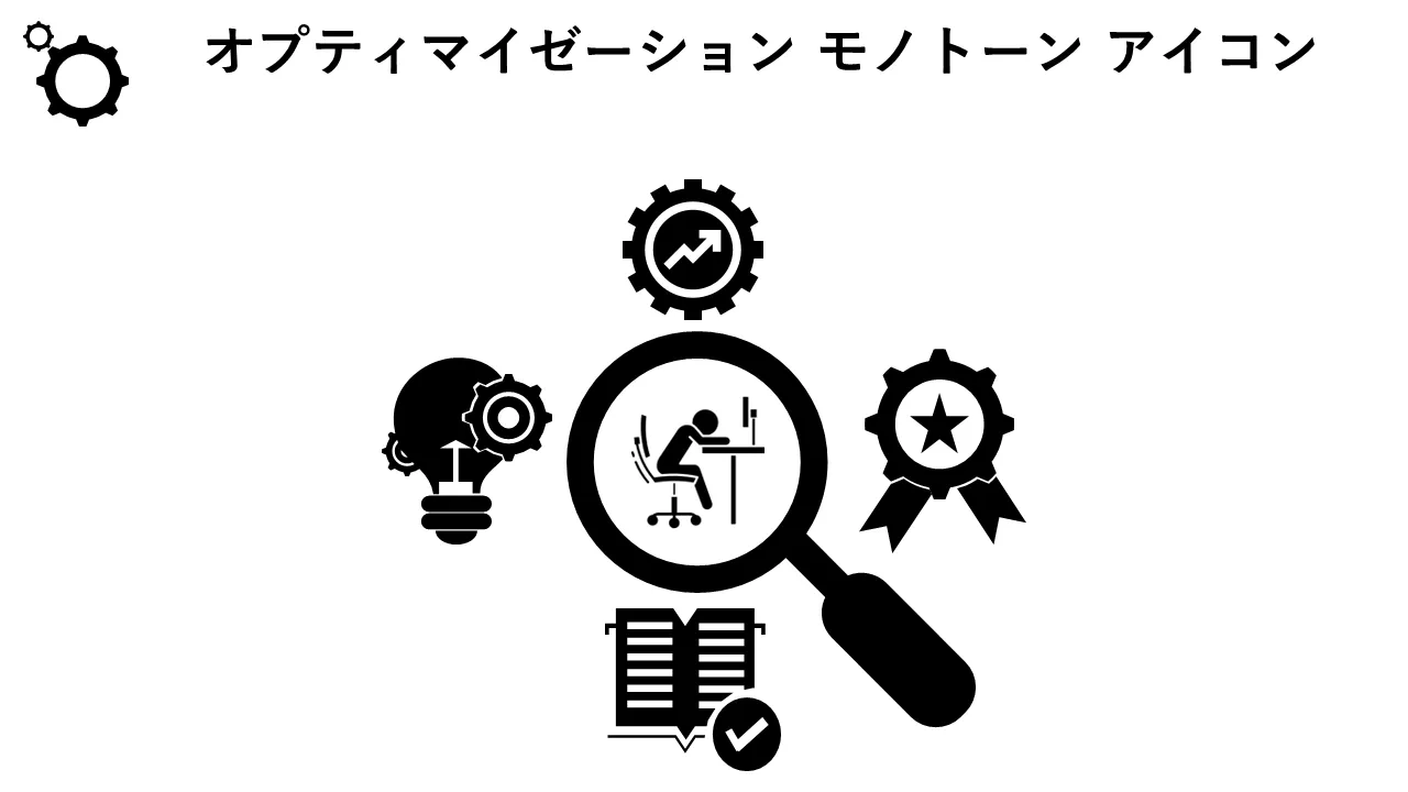 Powerpoint Pptx Png および編集可能な Eps 形式の視覚的に魅力的な最適化モノトーン アイコンは、データ、プロセス、主要な指標を明確に提示するために設計されています。ビジネス戦略のプレゼンテーション、クライアントへの提案、チームミーティングに最適です。 ...