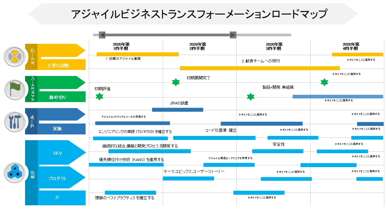 アジャイルなビジネス変革の取り組みを視覚化するために設計されたプロフェッショナルな PowerPoint テンプレート。戦略的実装を計画しているリーダーシップ チーム、コンサルタント、変更マネージャーに最適です。今すぐダウンロードしてください。
