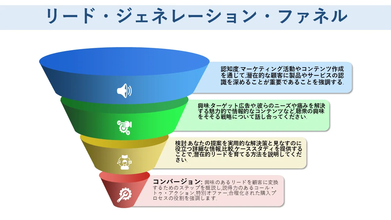 リードジェネレーションファネルPowerPoint プロフェッショナルプレゼンテーション用のPowerPointのテンプレート