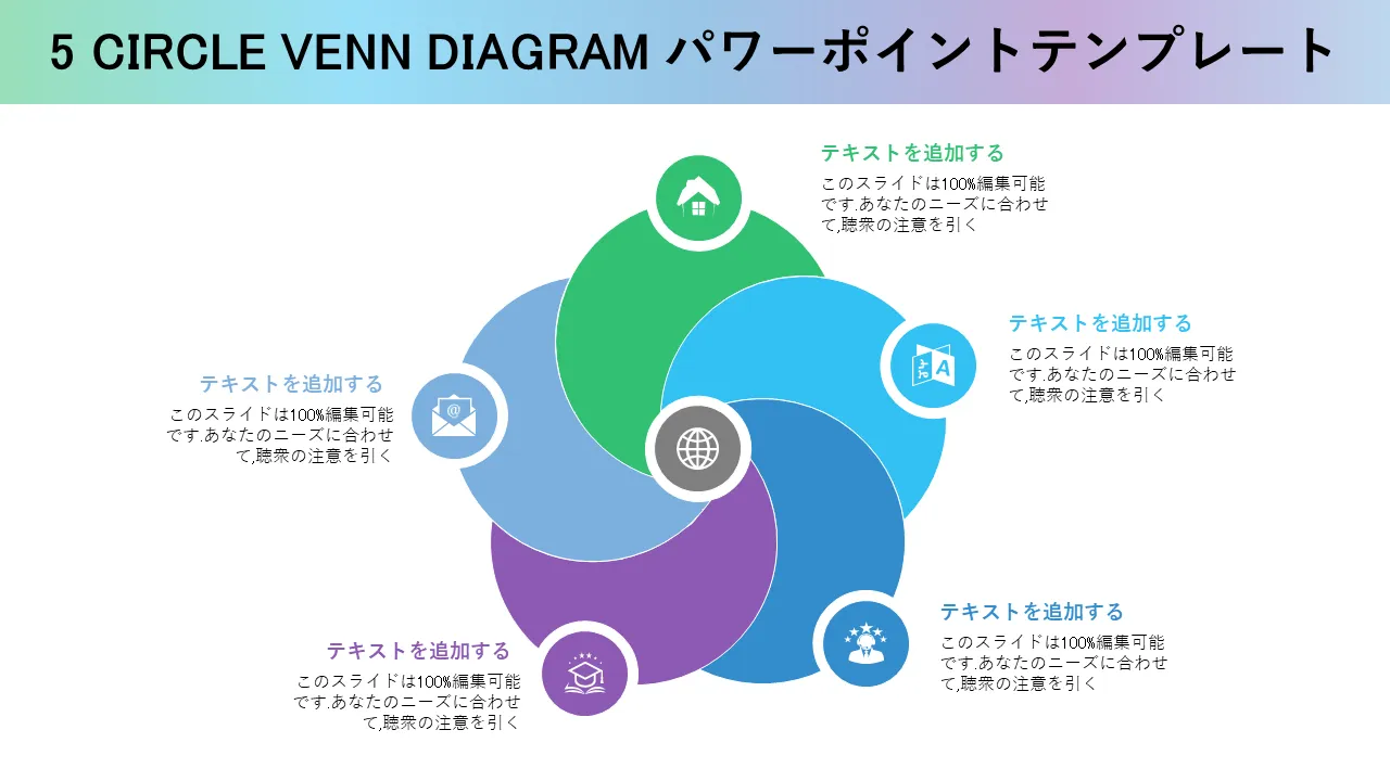 5つの円ベン図PowerPointのテンプレート