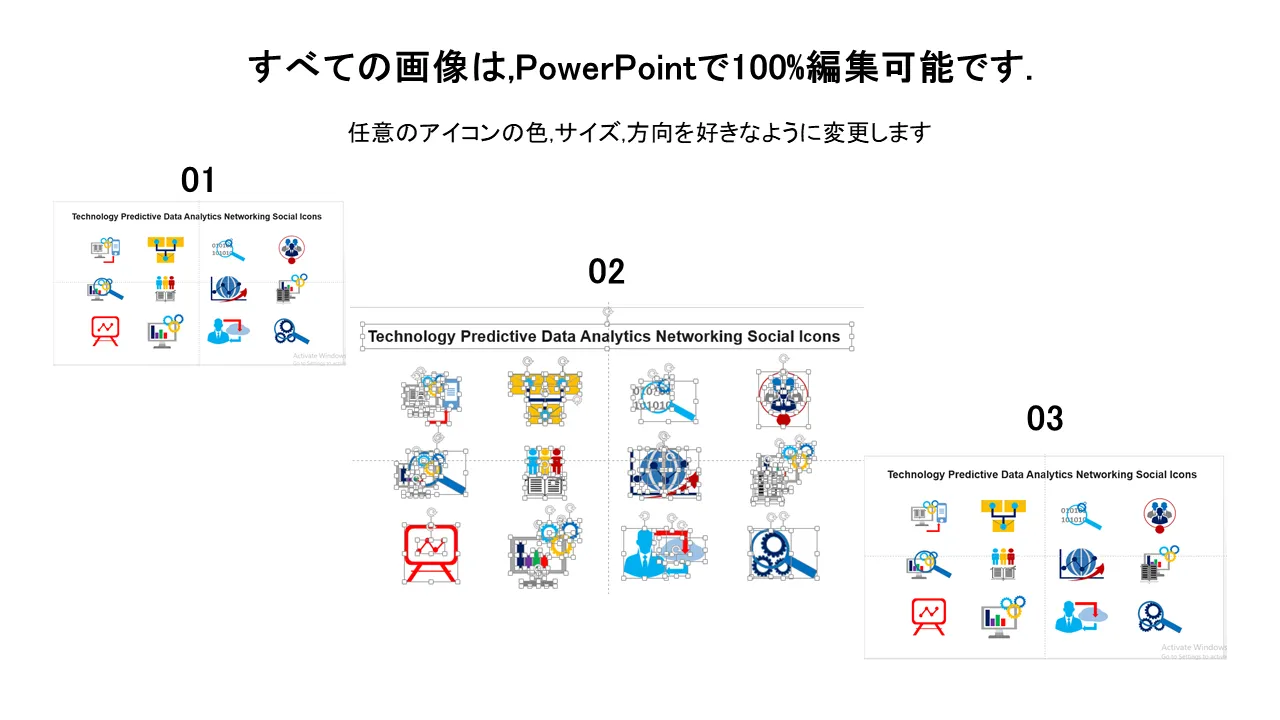 0115 テクノロジー予測データ分析ネットワーキングソーシャルアイコンパワーポイントスライドの特徴