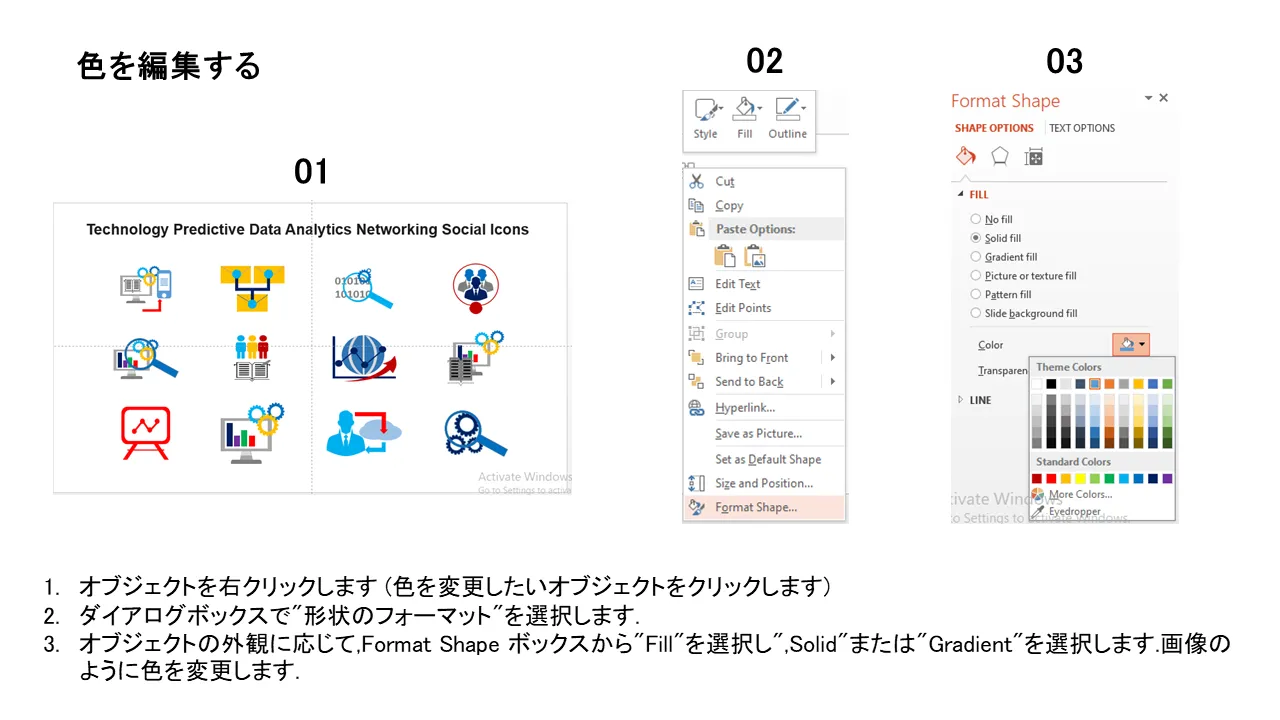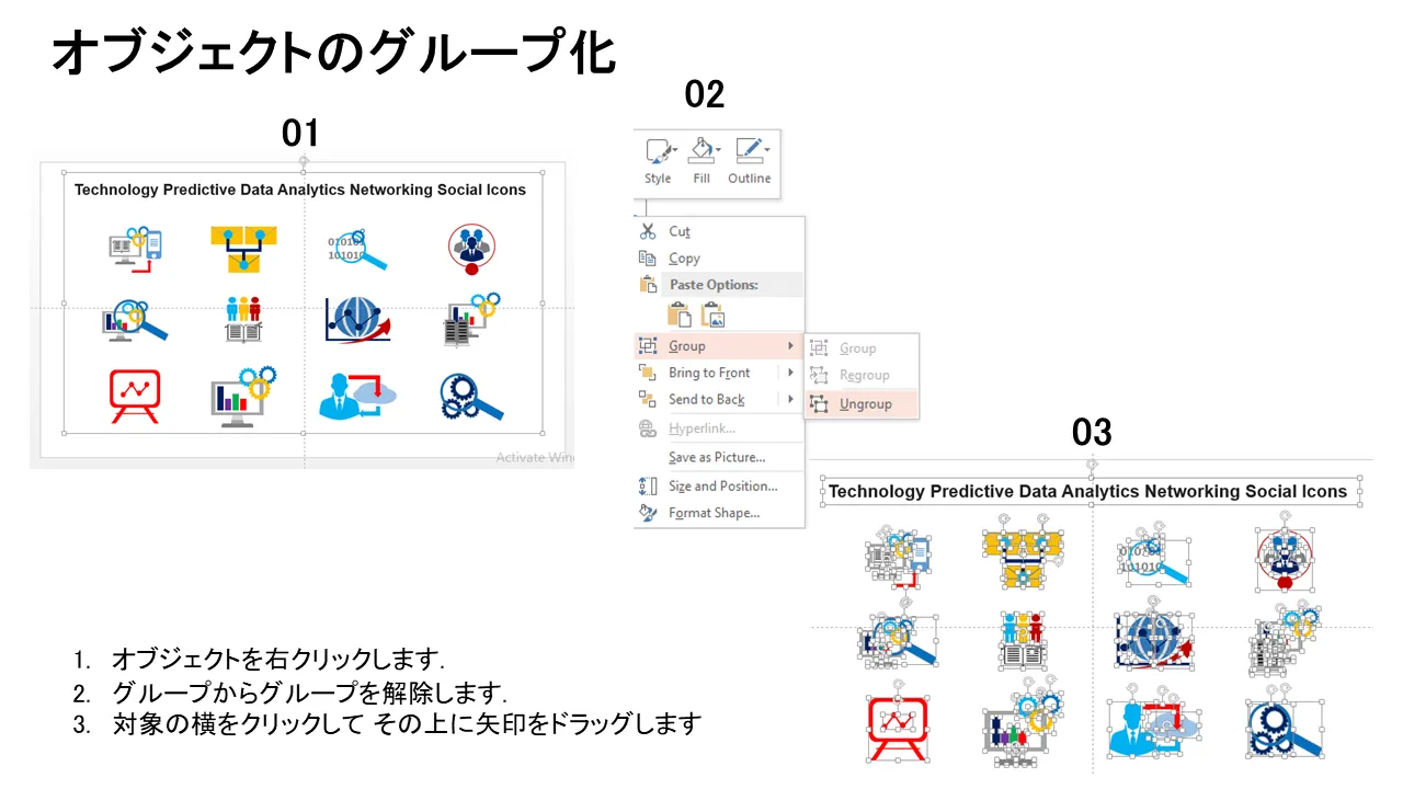 - 視覚的なストーリーテリングのための事前デザインされたデータ分析アイコン