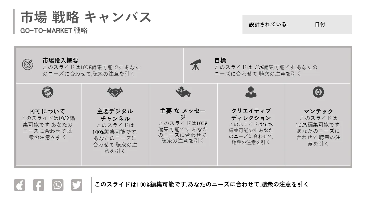 Go To Market 戦略キャンバス PowerPoint テンプレートの説明
