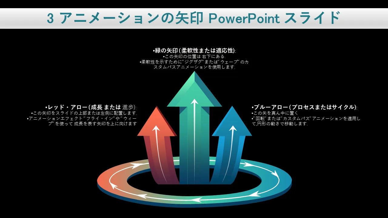3 つのアニメーション矢印 PowerPoint テンプレートの説明