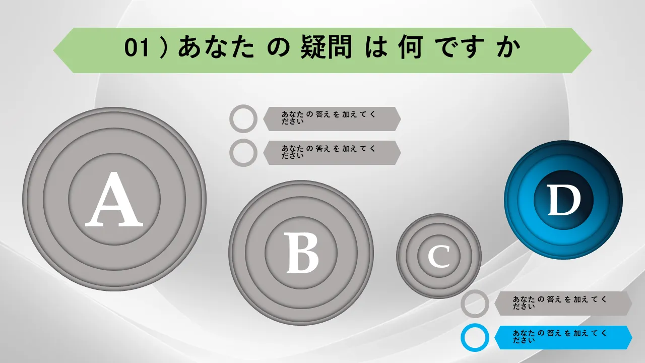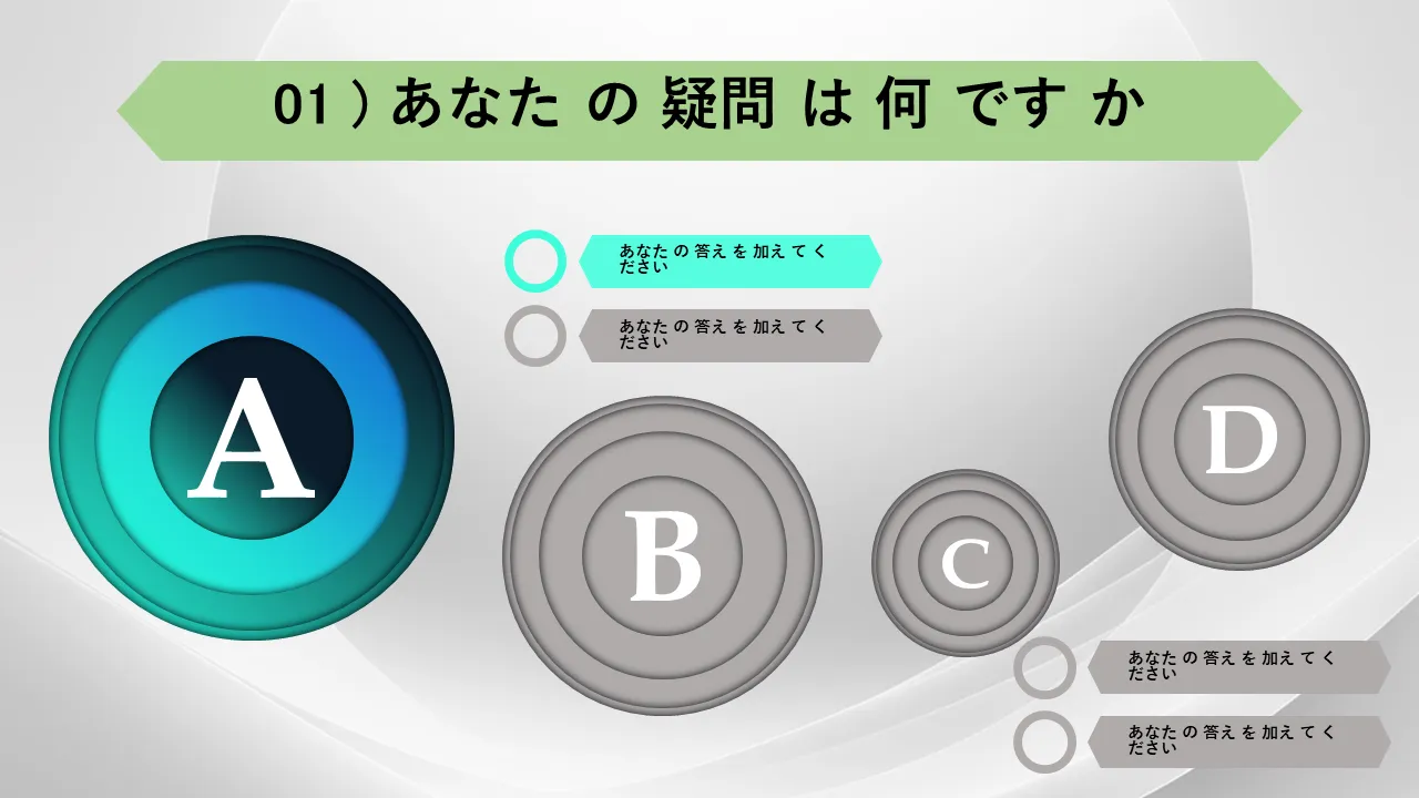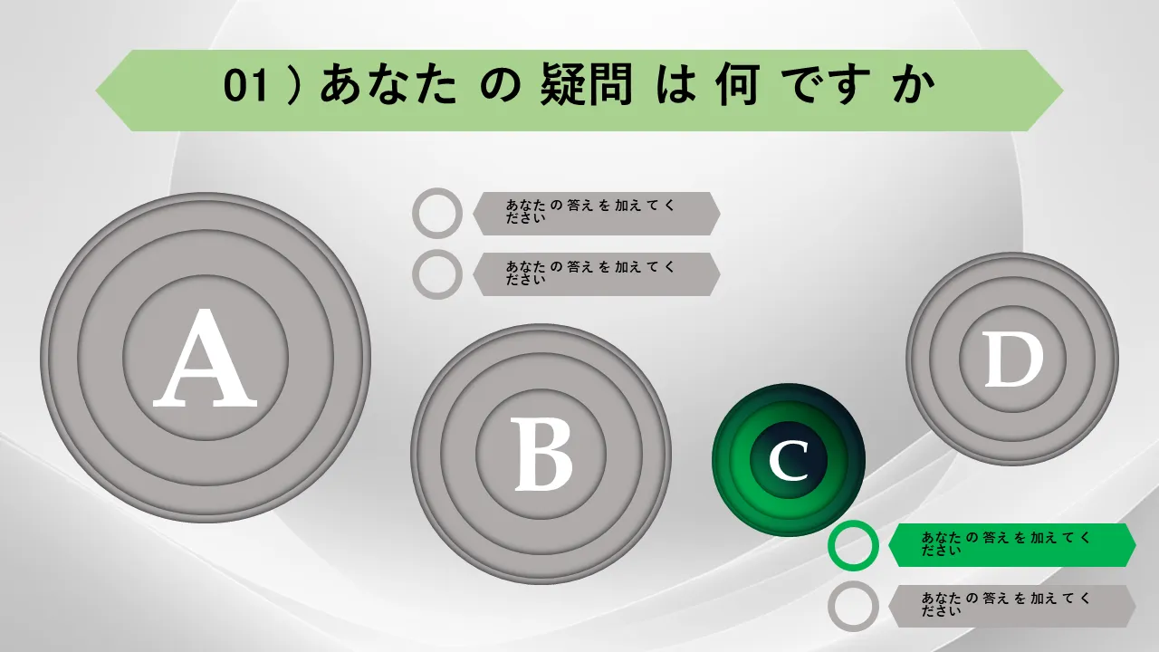 - ユーザーが明確に選択できる、スライドごとに 4 つの異なる回答オプション
