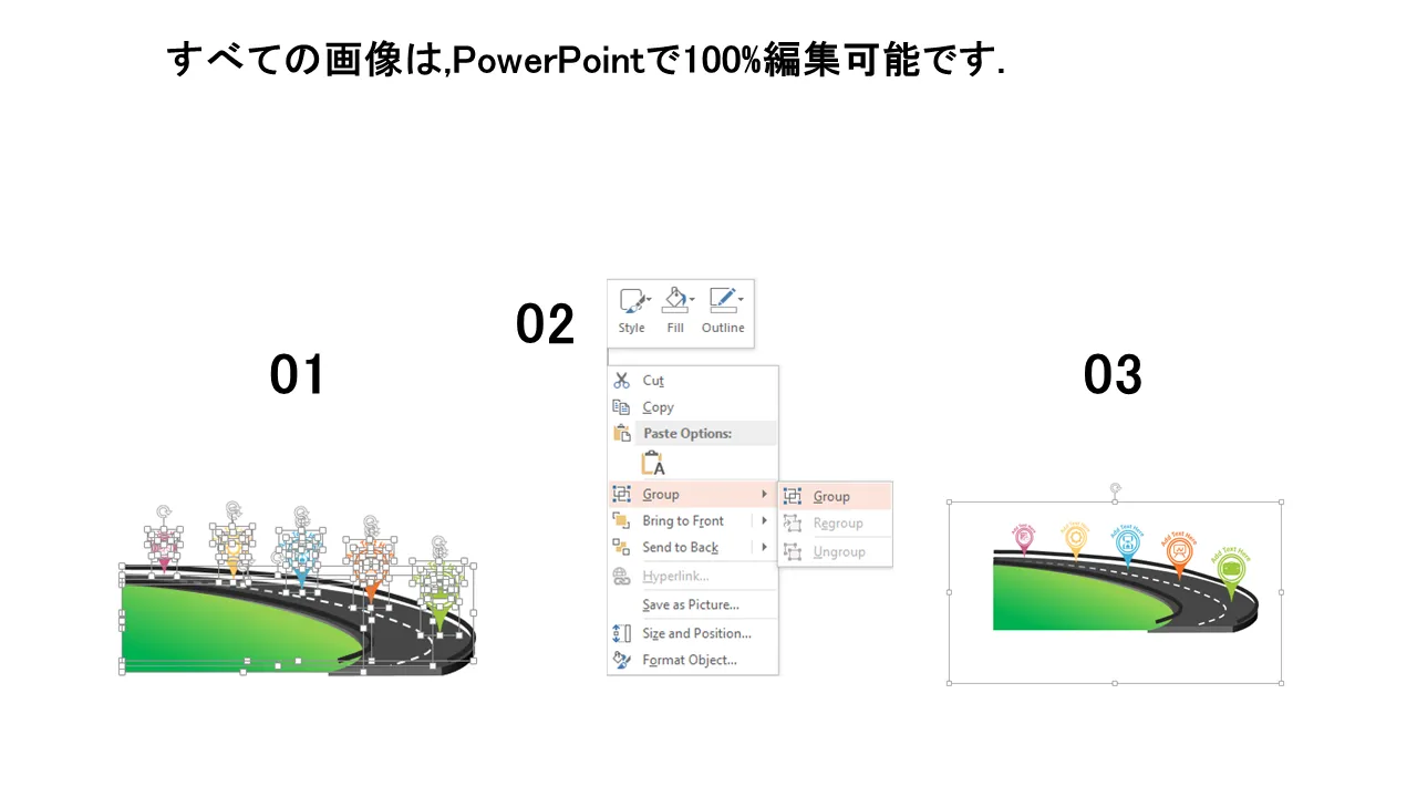 - Microsoft 365 を含む PowerPoint 2016 以降のバージョンと互換性