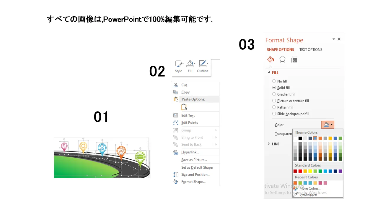 - 完全に編集可能なテキスト、図形、色、アイコンブランドのカスタマイズ
