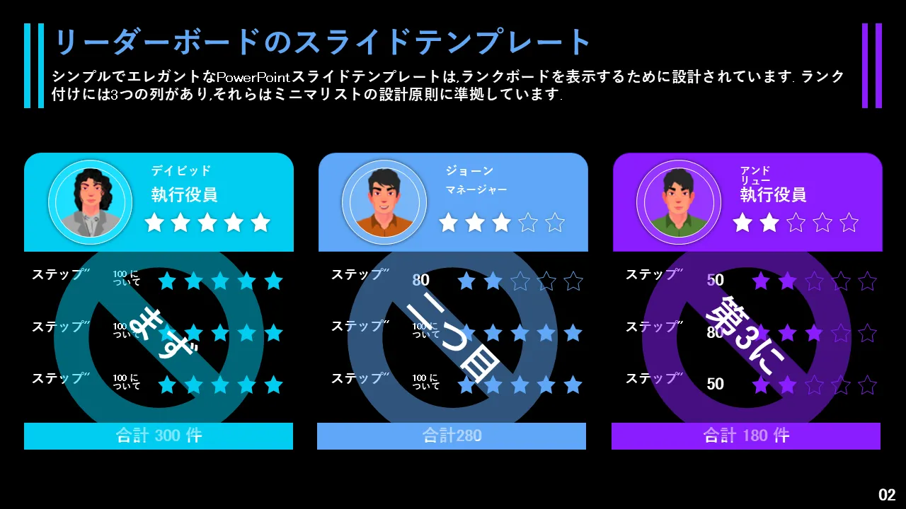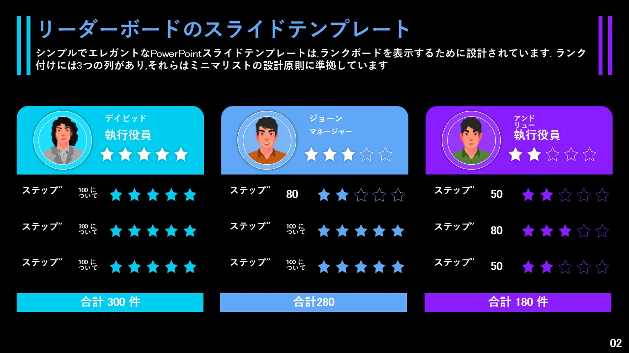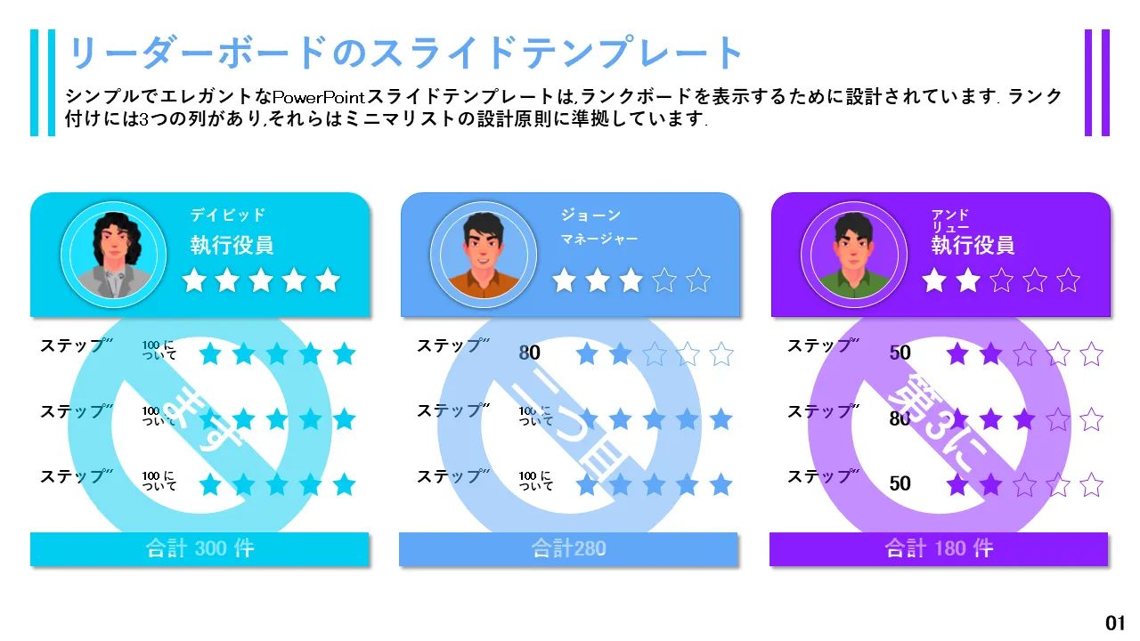 ビジネス プレゼンテーション用 PowerPoint のリーダーボード スライド テンプレートの特徴