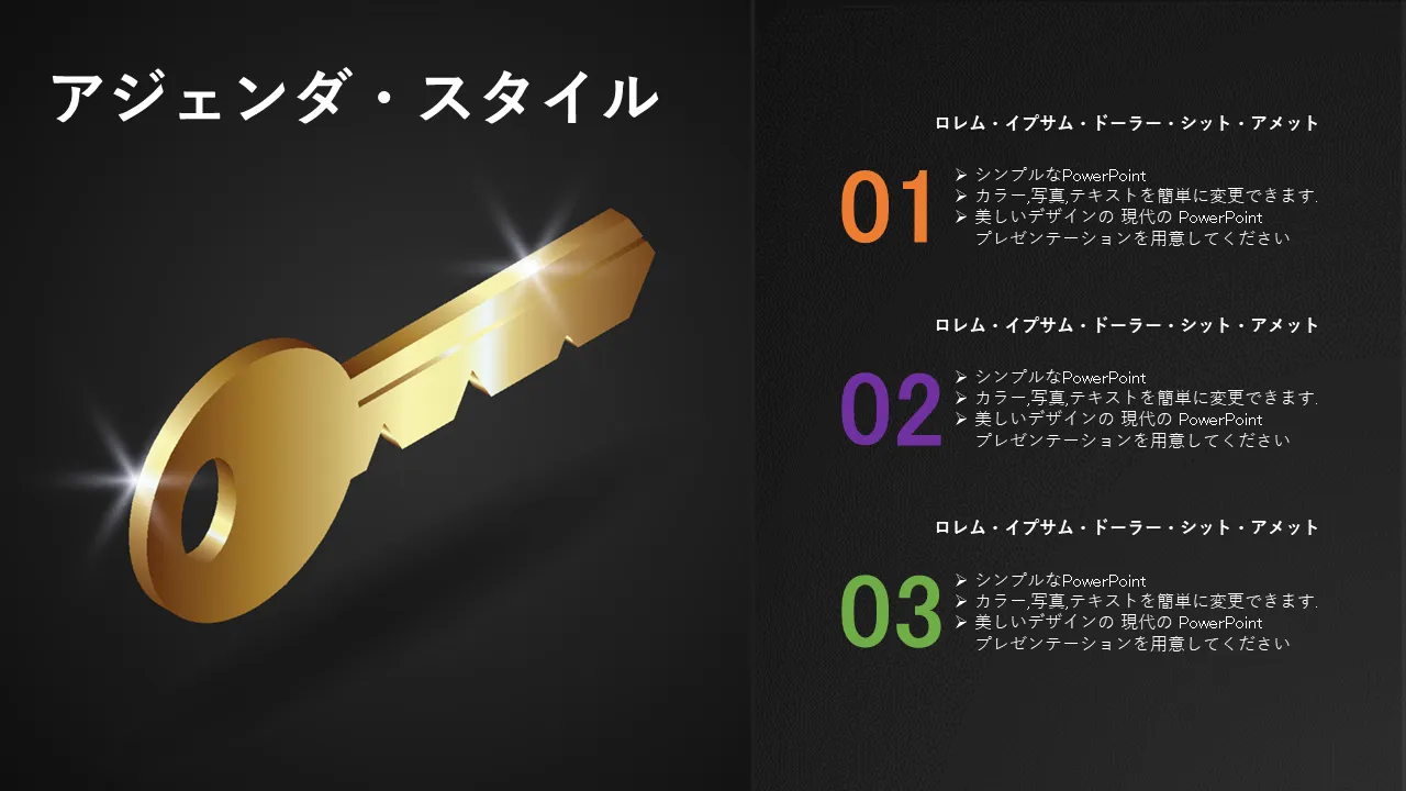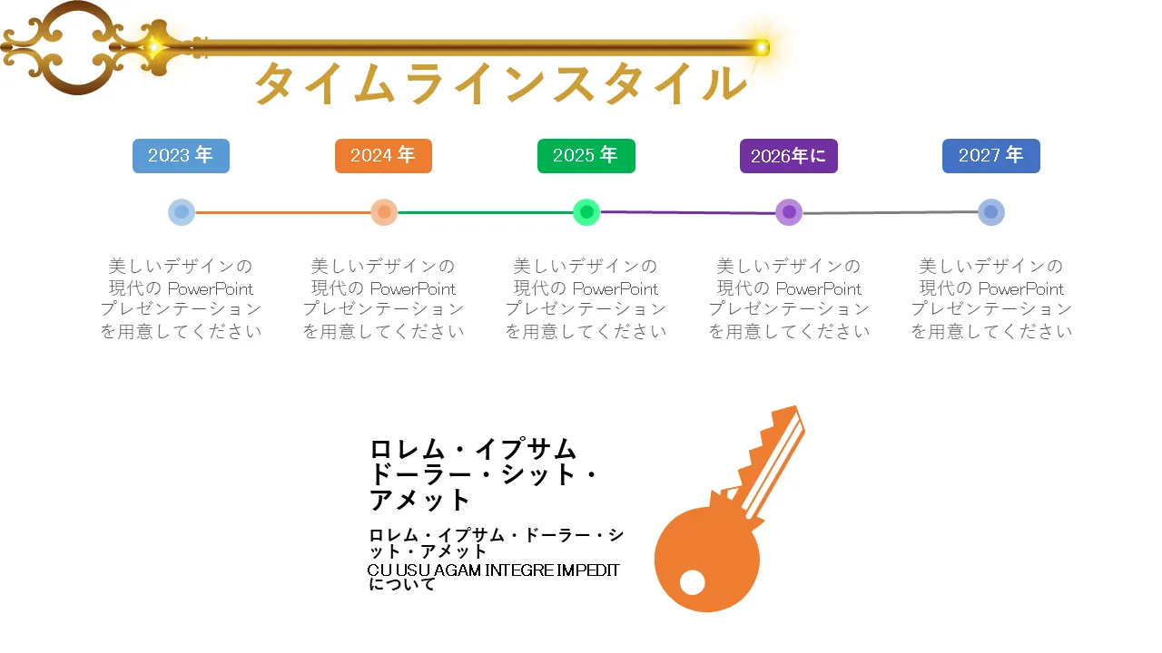 この視覚的に説得力のある PowerPoint テンプレートは、アクセス、制御、戦略的優位性を象徴する金の鍵を保持しているビジネスマンの比喩を中心にしています。プロフェッショナル向けにデザインされており、権威と先進的なビジョンを伝える、洗練されたモダンな美学を提供します。このテンプレートは、画期的なアイデアを伝えたり、機会を解放したり、重要なビジネス上の意思決定を視聴者にガイドしたりするのに最適です。すっきりとしたレイアウトと象徴的な画像により、視覚的なストーリーテリングが重要な一か八かのプレゼンテーションに最適です。