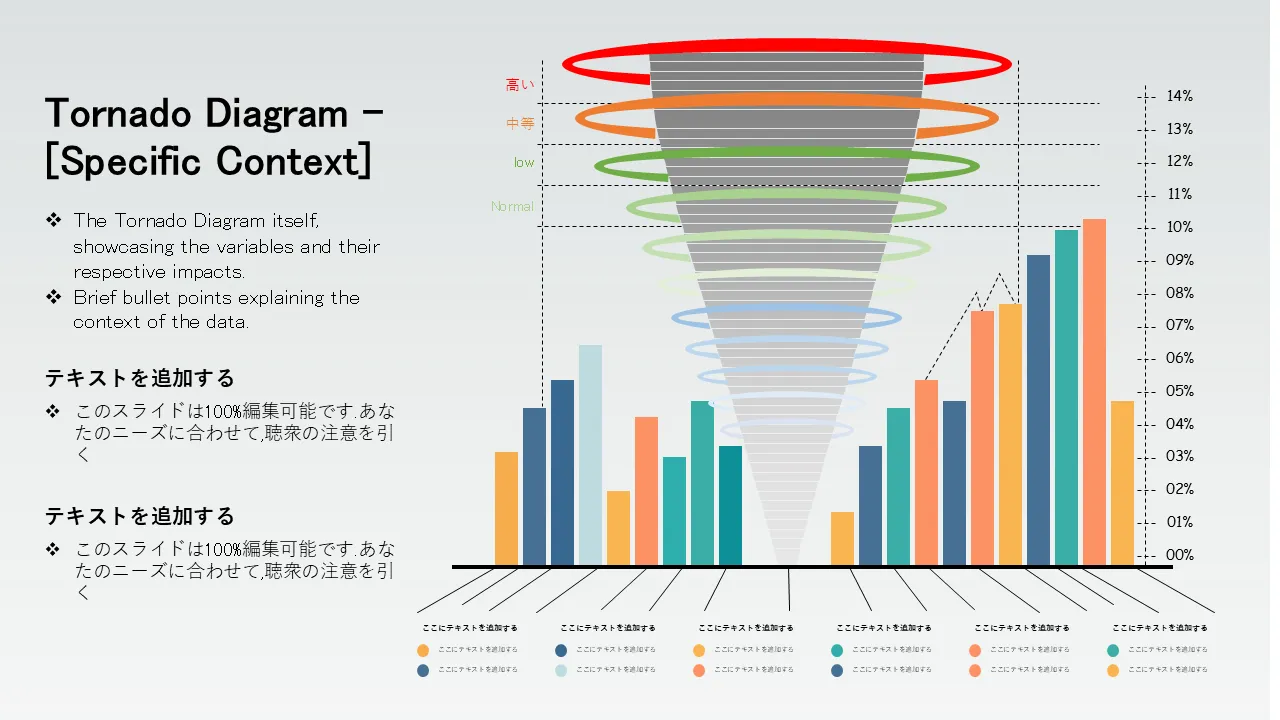 ビジネスプレゼンテーション用の竜巻図PowerPointのテンプレートの特徴