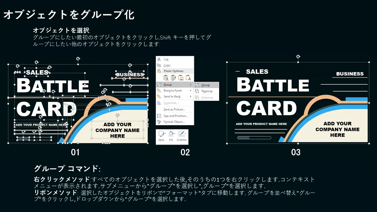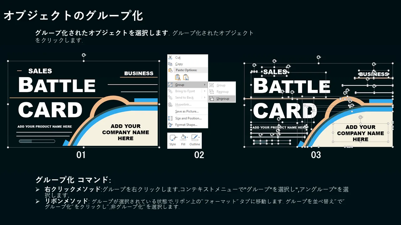 ビジネスプレゼンテーション用のセールスバトルカードPowerPointのテンプレートの特徴