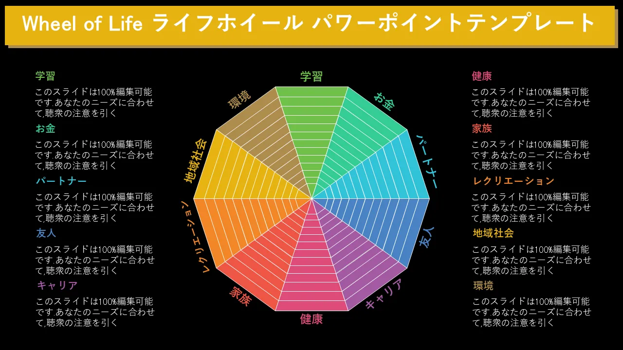 Wheel Of Life Powerpoint テンプレートの説明