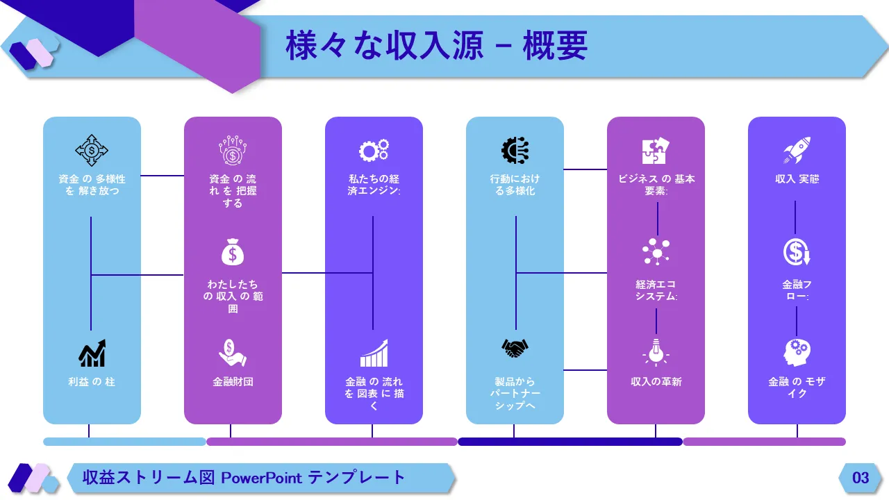 ビジネスプレゼンテーション用の収益の流れ図PowerPointのテンプレート
