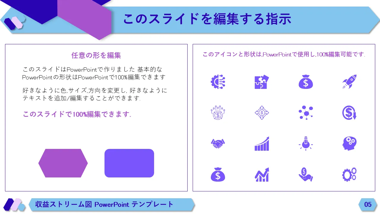 収益の流れ図の PowerPoint テンプレートの説明