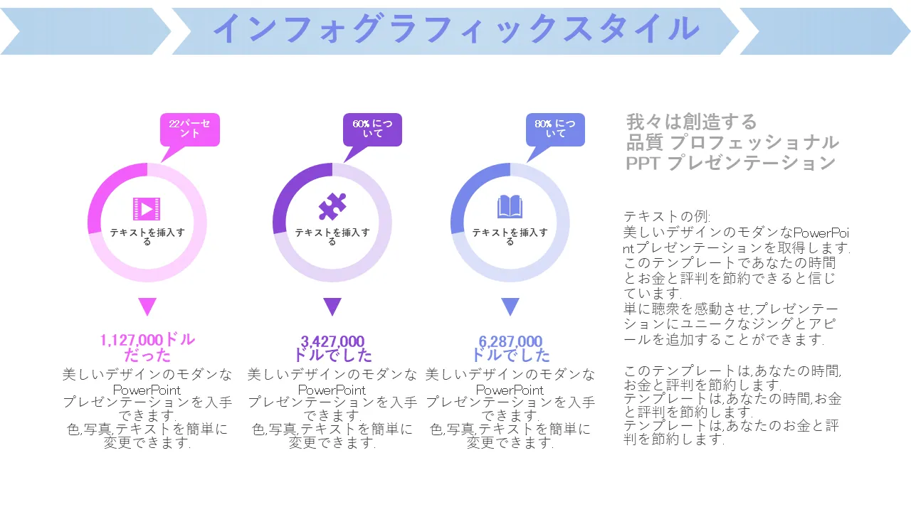 この専門的にデザインされた PowerPoint テンプレートは、構造化されたビジュアル、クリーンなタイポグラフィ、モダンなデザイン言語を通じてインフォグラフィックのコンセプトを示しています。発表者が複雑なアイデアを明確かつインパクトをもって伝えるのに役立ち、役員会議室、仮想会議、会議でのプレゼンテーションに最適です。このテンプレートは、視覚的な魅力と情報の深さのバランスをとり、すべてのスライドが視聴者に最大の価値を提供することを保証します。