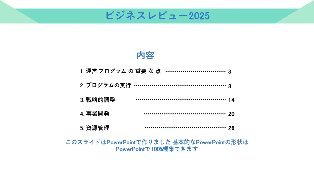 ビジネス レビュー PowerPoint テンプレートの説明