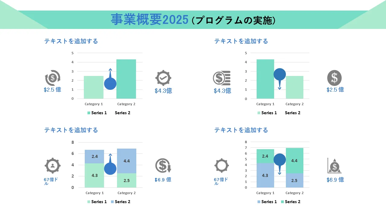 - 企業固有のデータやデータに対応する柔軟なスライド構造目標