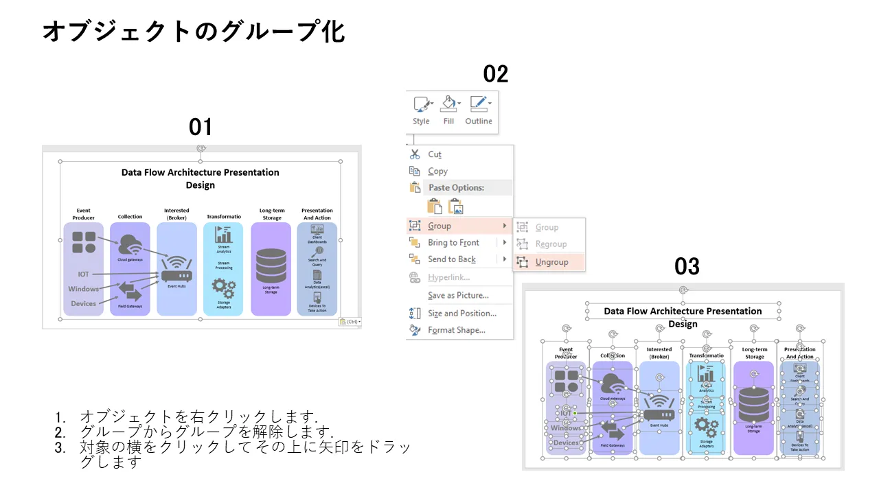 データ フロー アーキテクチャのプレゼンテーション デザインの説明