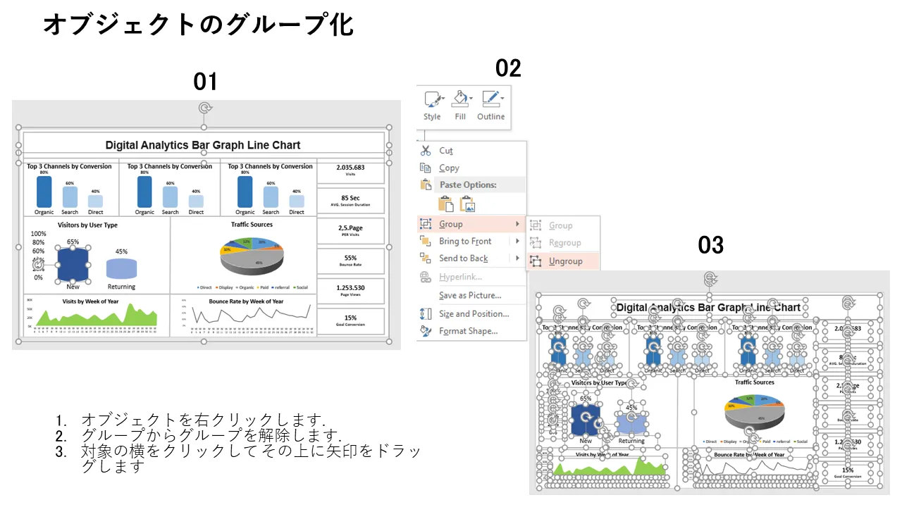 デジタル アナリティクスの棒グラフ、折れ線グラフの特徴