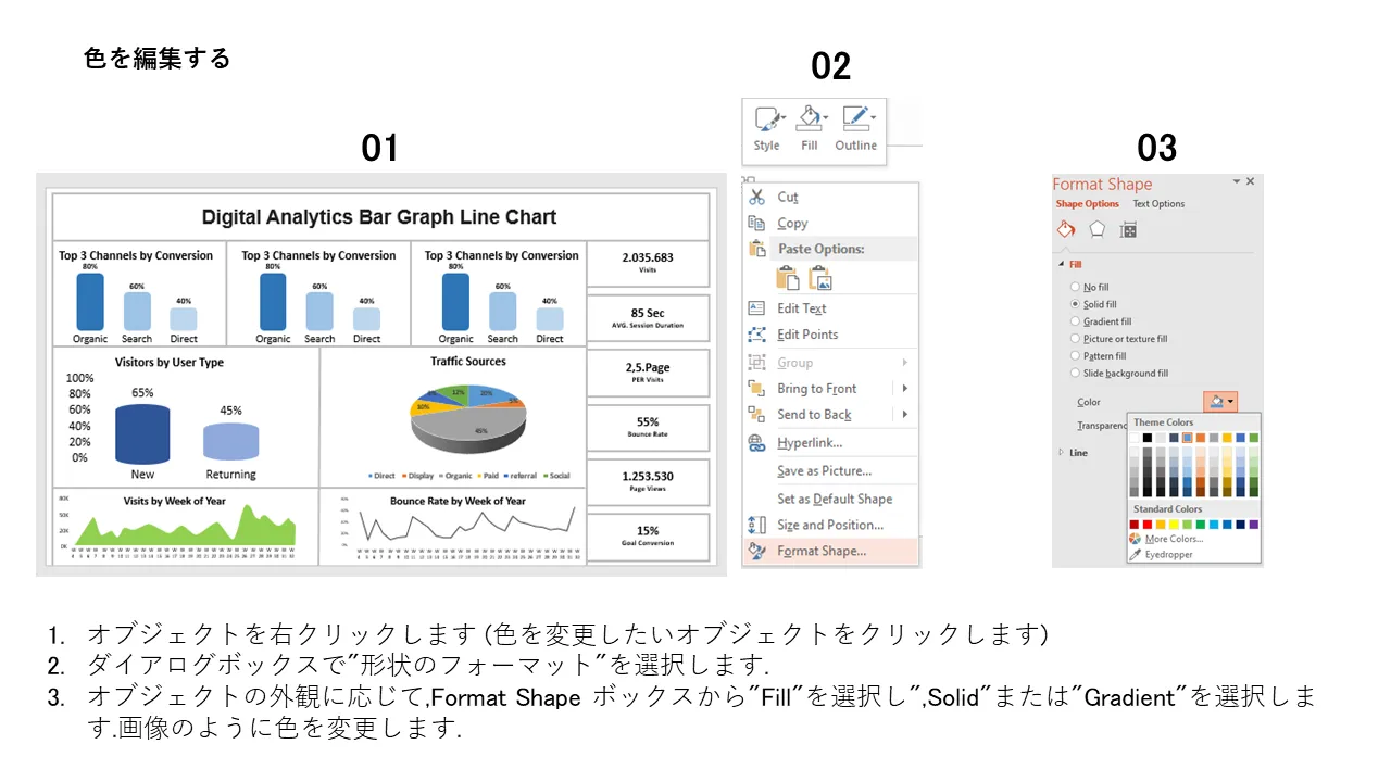 - カスタマイズされたデータ プレゼンテーションのための編集可能なグラフ軸と凡例が含まれています