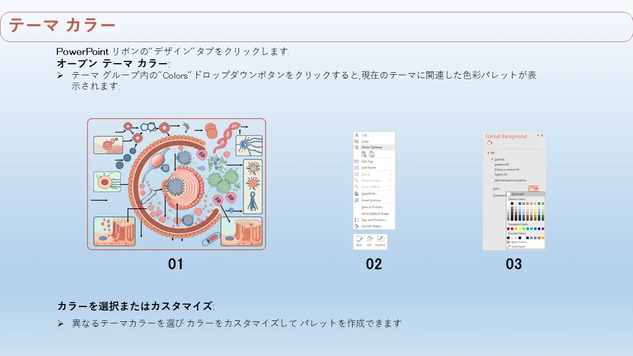 - 一貫したストーリーテリングを実現するすべてのスライドにわたる一貫したデザイン言語