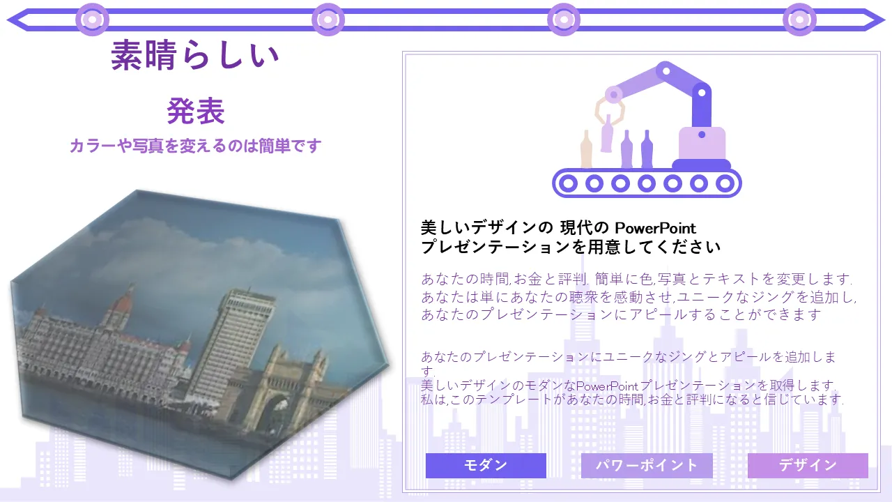 - 一貫したストーリーテリングを実現するすべてのスライドにわたる一貫したデザイン言語