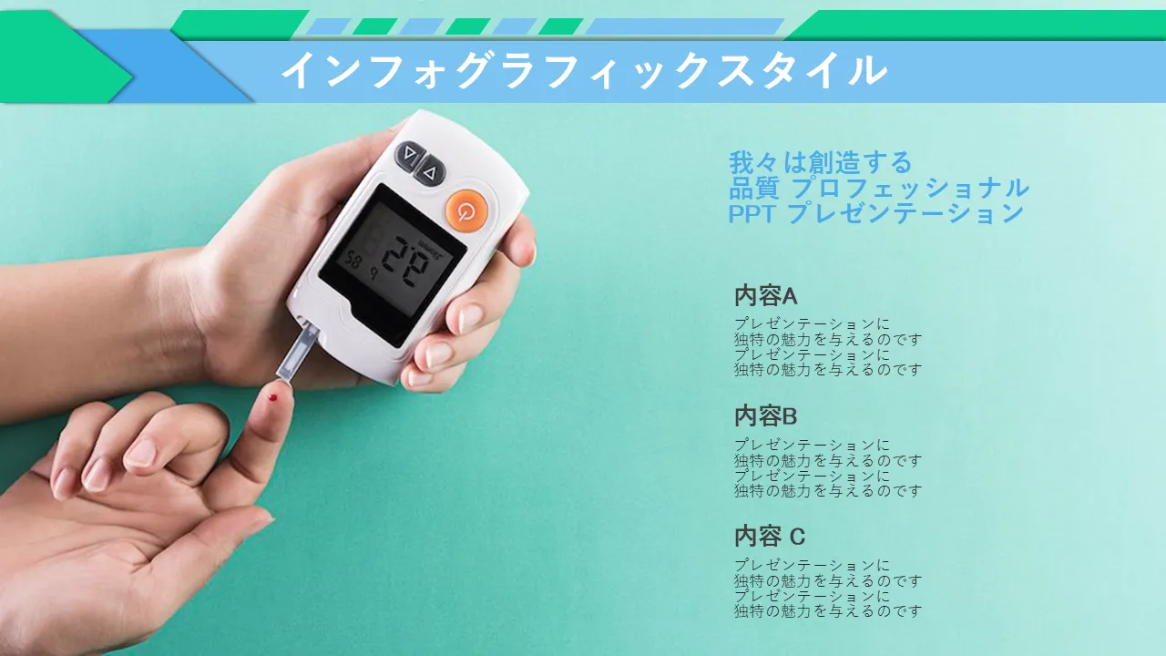 健康的な糖尿病生活 ビジネス プレゼンテーション用 PowerPoint テンプレートの特徴