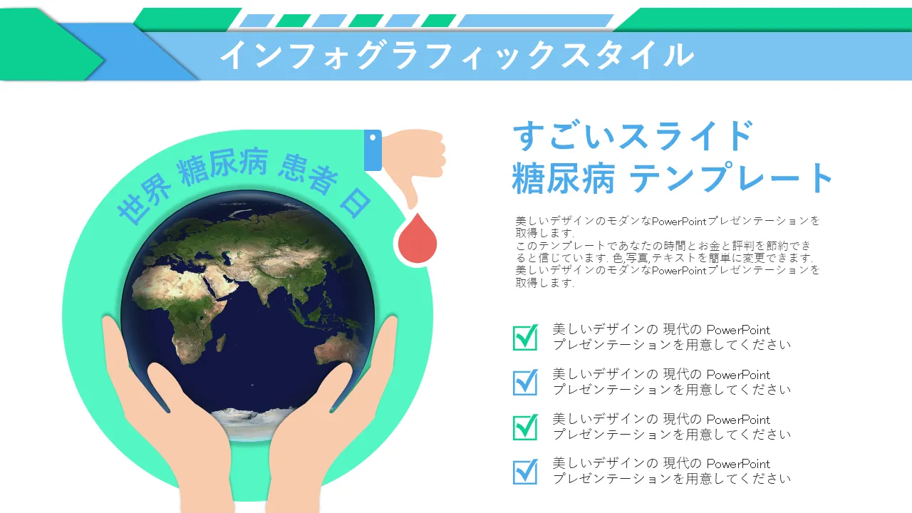 健康的な糖尿病生活の PowerPoint テンプレートの説明