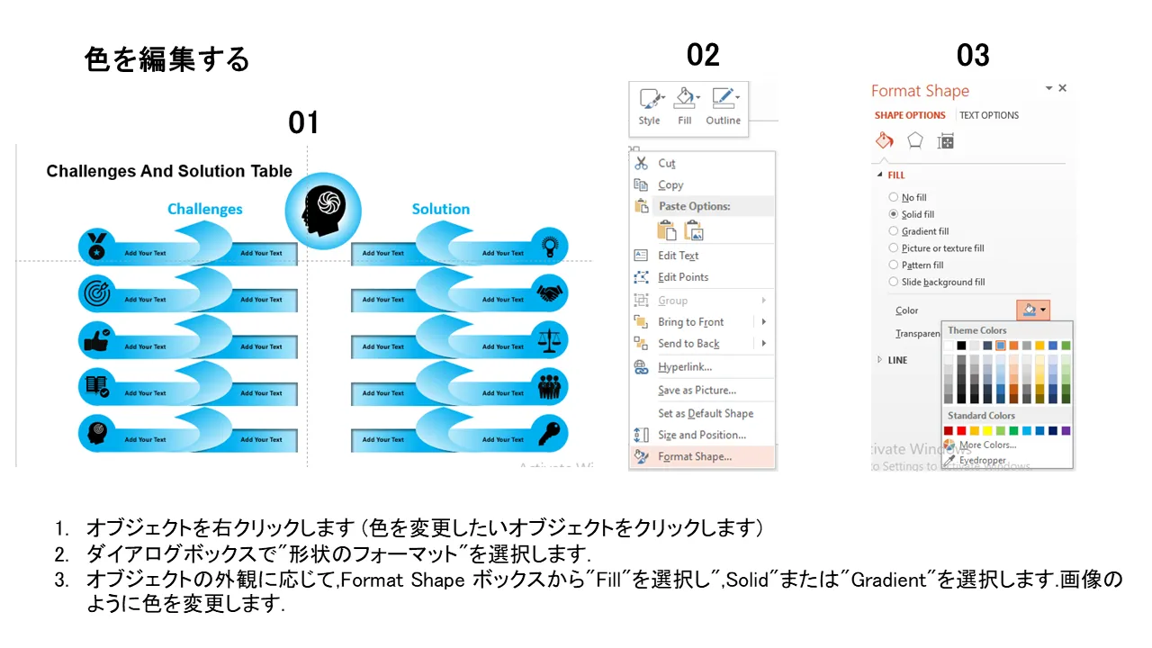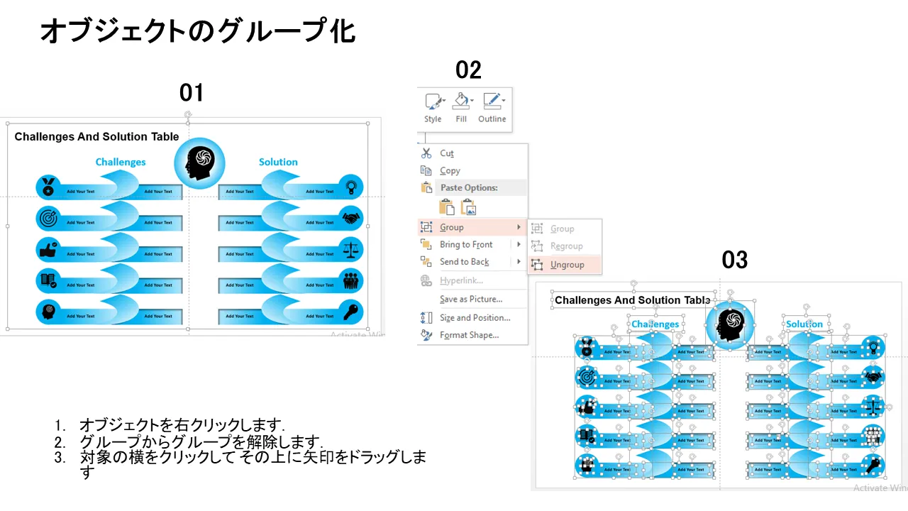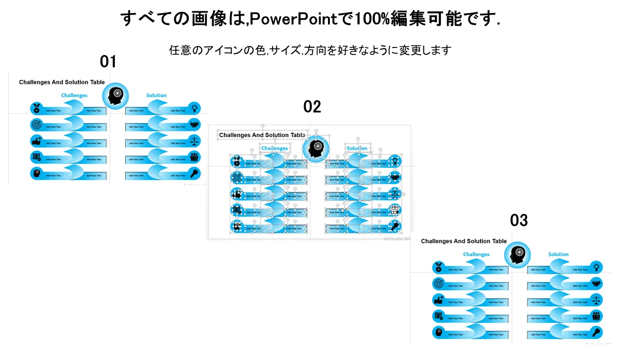 課題と解決策の表 Powerpoint グラフィックスの特徴