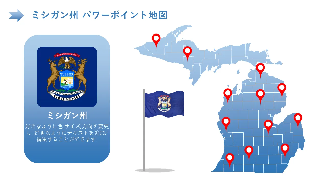 ミシガン州と郡PowerPointの地図プロフェッショナルプレゼンテーション用のPowerPointのテンプレートの特徴