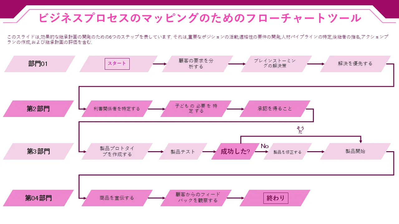 このプロフェッショナルな PowerPoint テンプレートは、組織がオペレーショナル エクセレンスを達成するためのコア ビジネス プロセスの戦略的再設計をガイドできるように設計されています。非効率を特定し、重要なワークフローをマッピングし、持続可能な改善を実施するための、明確で視覚的に魅力的なフレームワークを提供します。リーダーシップ チームやコンサルタントに最適で、データに基づいた意思決定と部門全体のプロセスの最適化をサポートします。