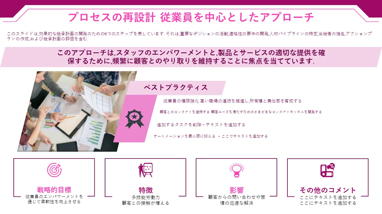 - 重要なポジション、資格基準、人材パイプラインのカスタマイズ可能なプレースホルダー