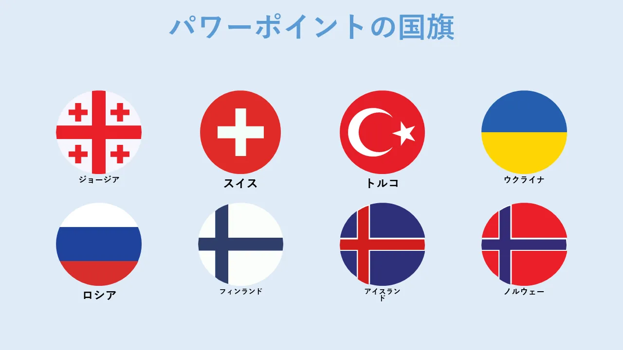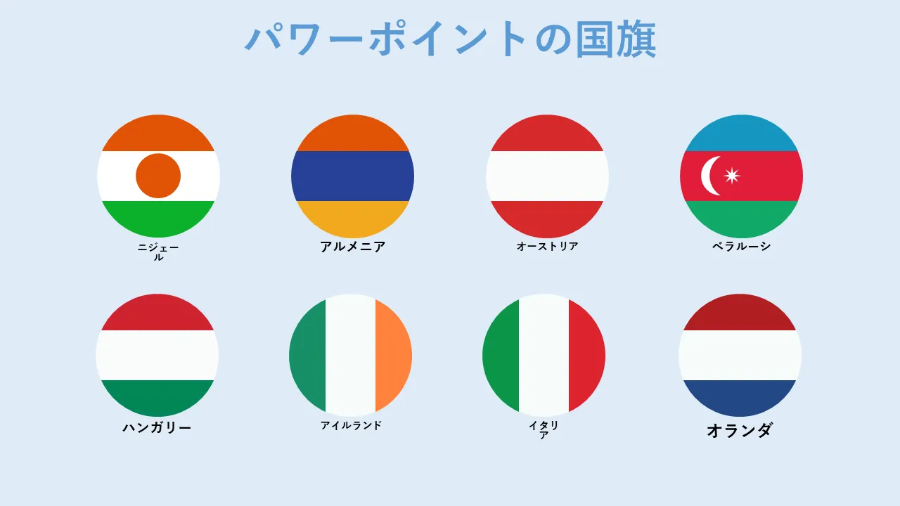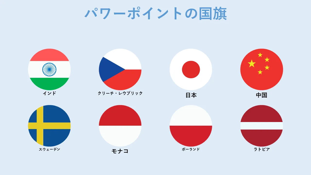 - PowerPoint との互換性のために最適化された高解像度の国旗グラフィック