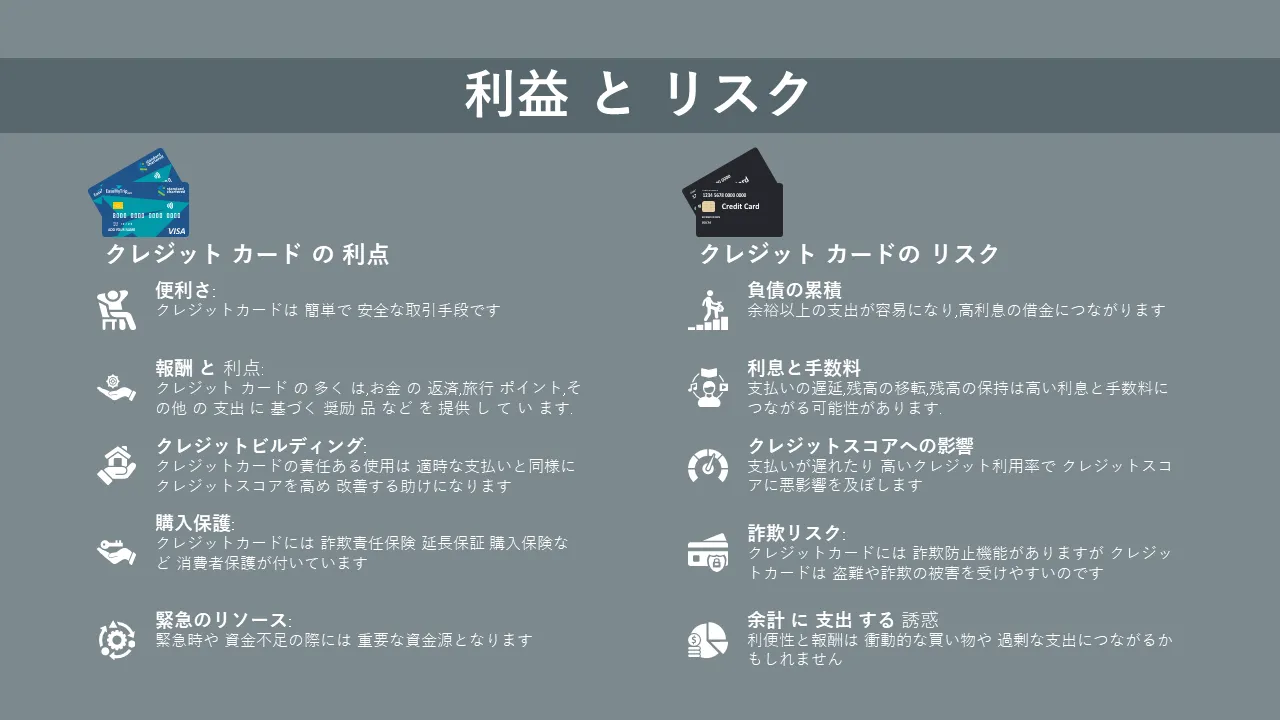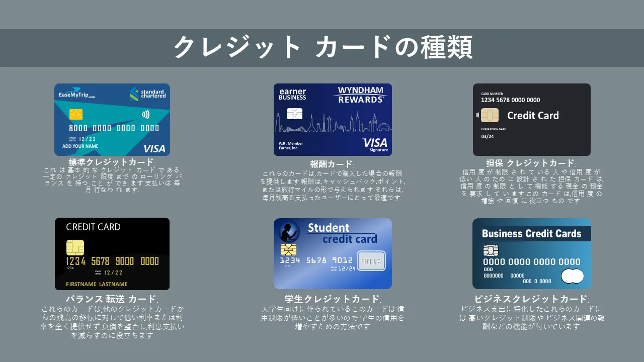 - クレジット カードの種類とその利点を説明するための明確な視覚的階層