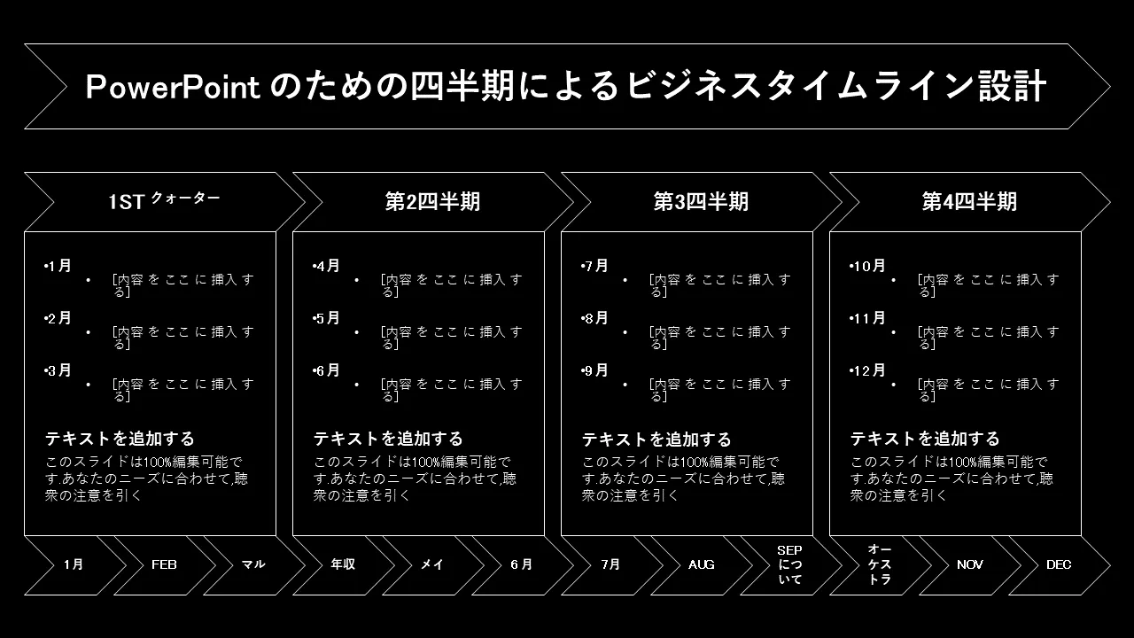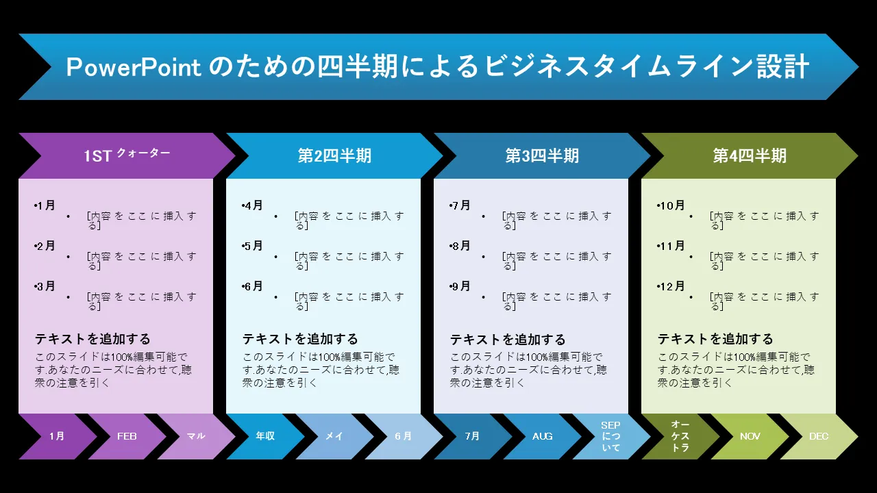 四半期ビジネス タイムライン PowerPoint テンプレートの説明