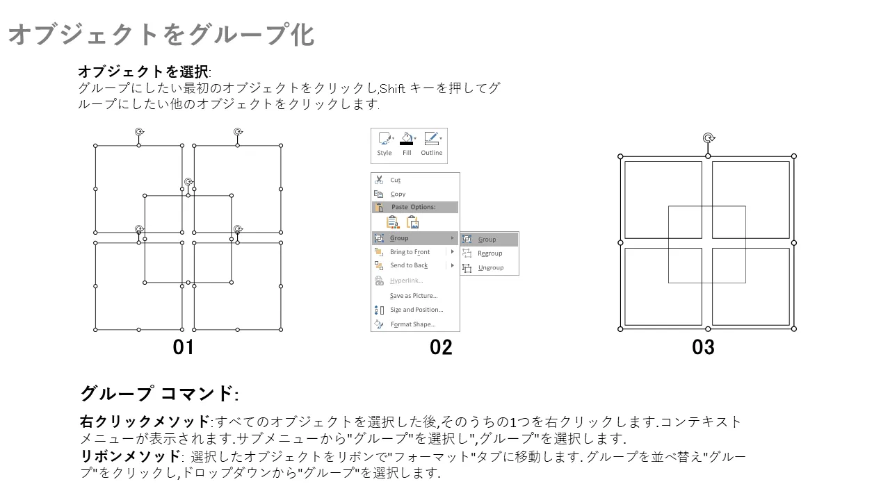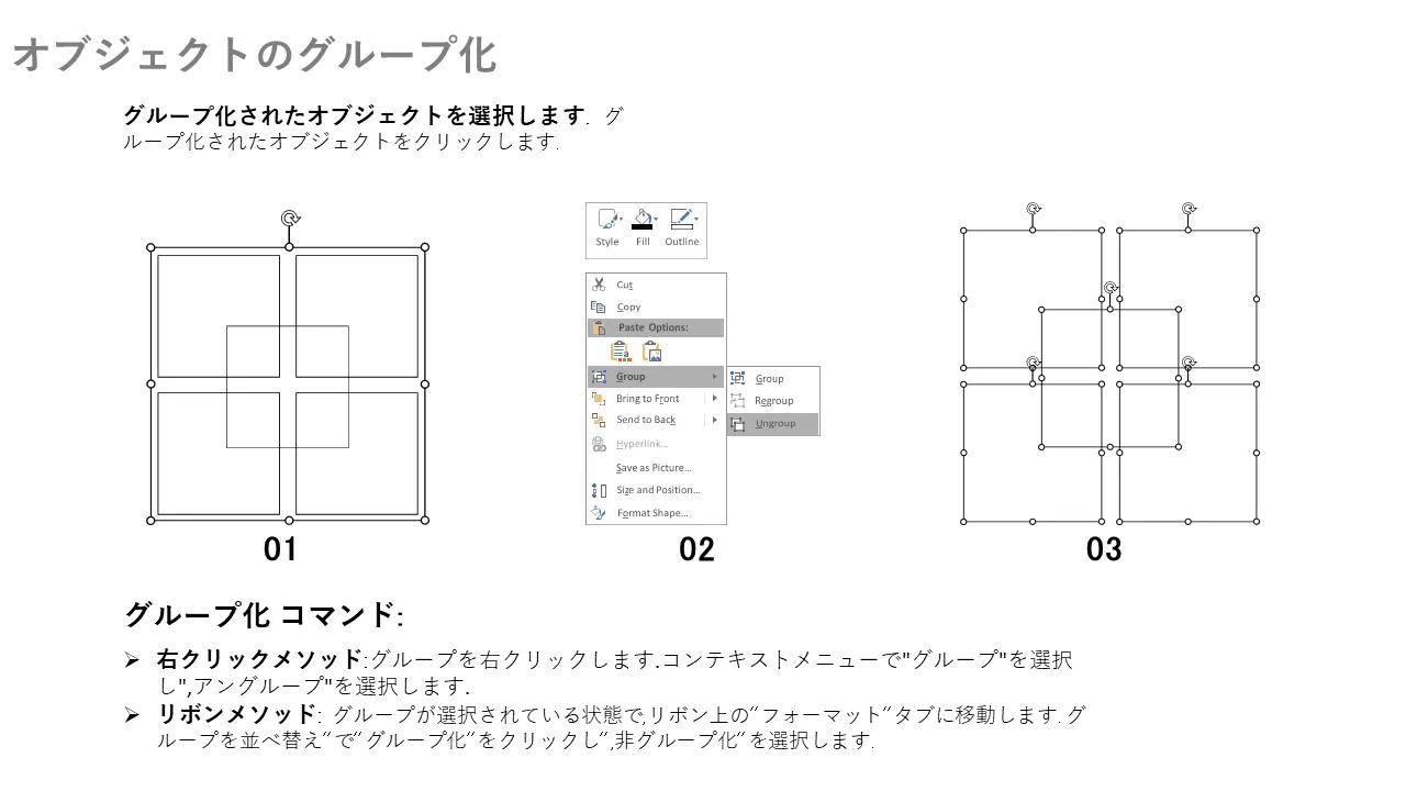 - 編集とオブジェクト管理を容易にする統合されたグループ化およびグループ化解除の手順