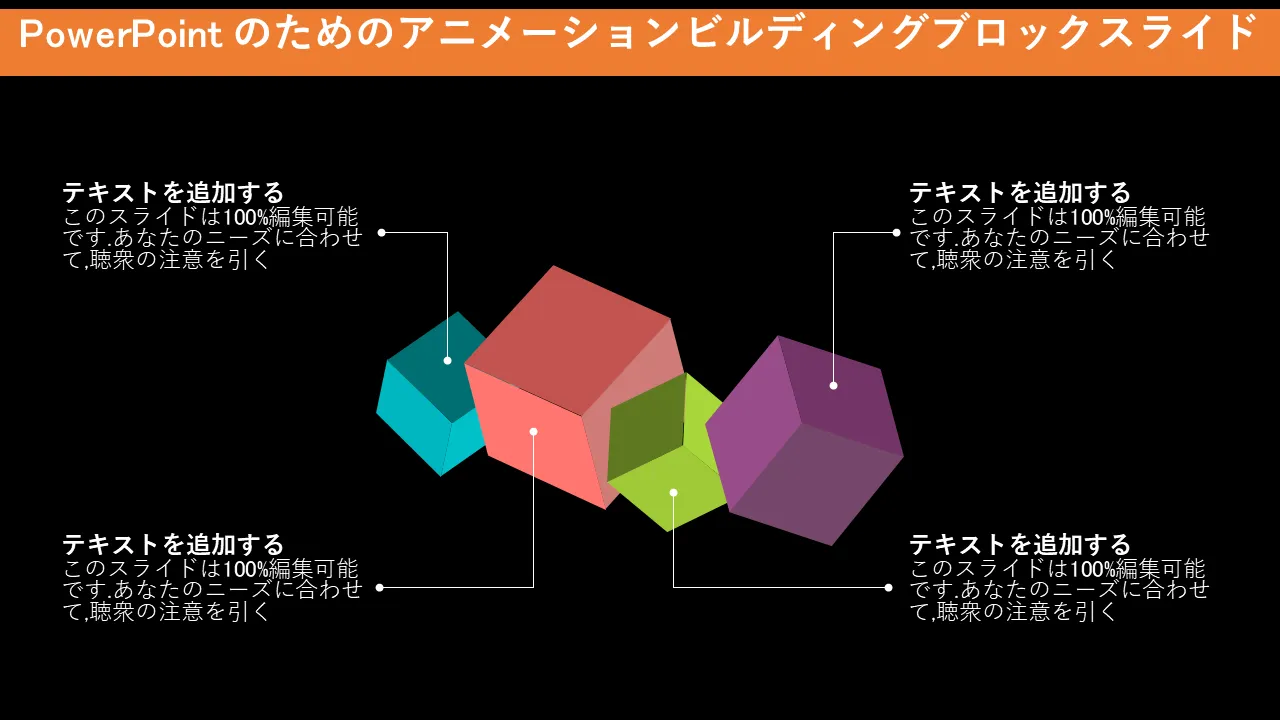 Powerpoint 用のアニメーション ビルディング ブロック スライドの特徴
