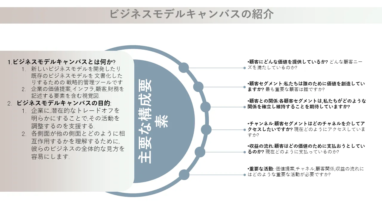 ビジネス モデル キャンバス PowerPoint テンプレートの説明