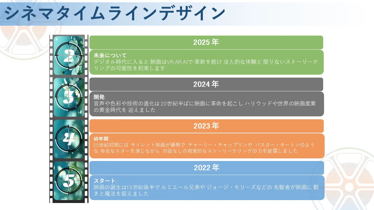 Powerpoint 用の映画タイムライン テンプレートの特徴