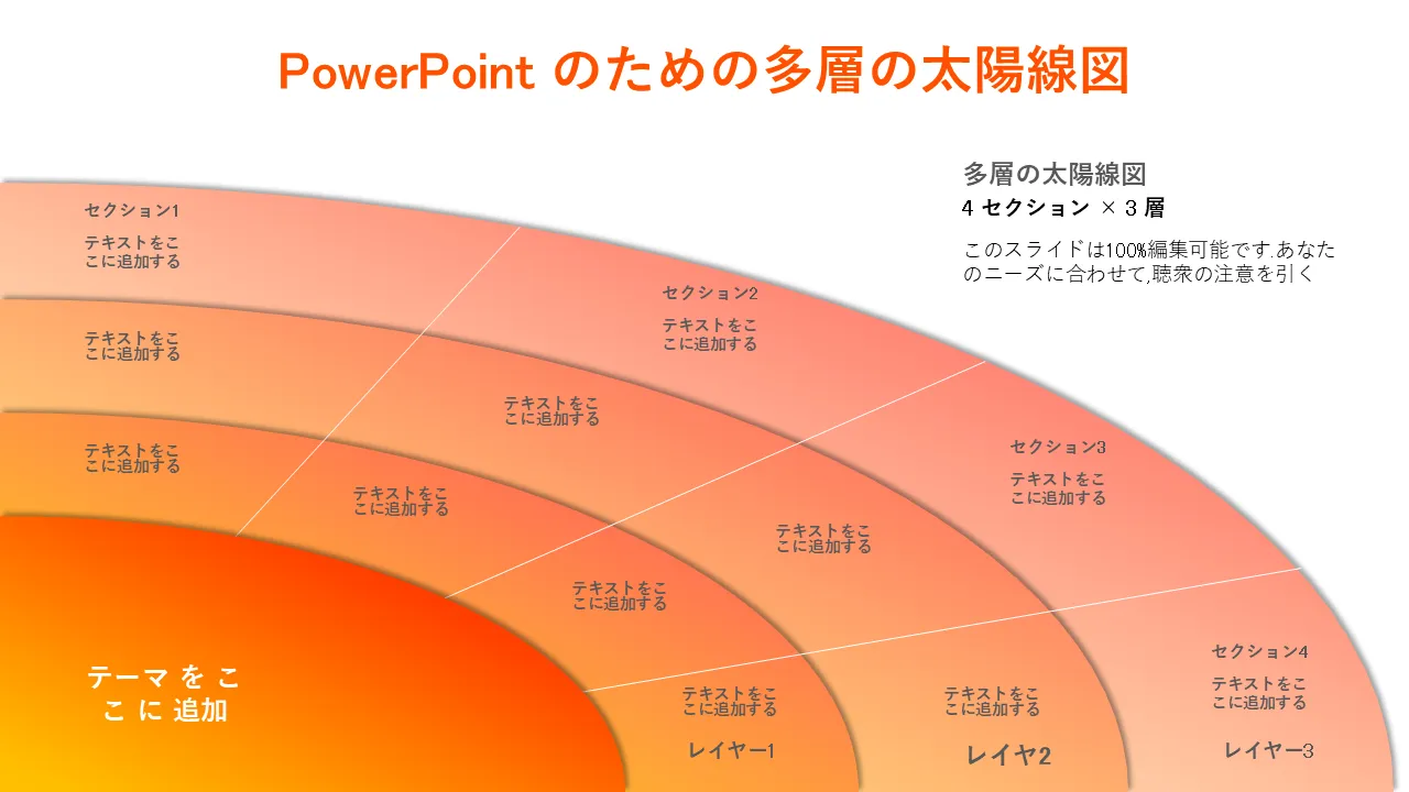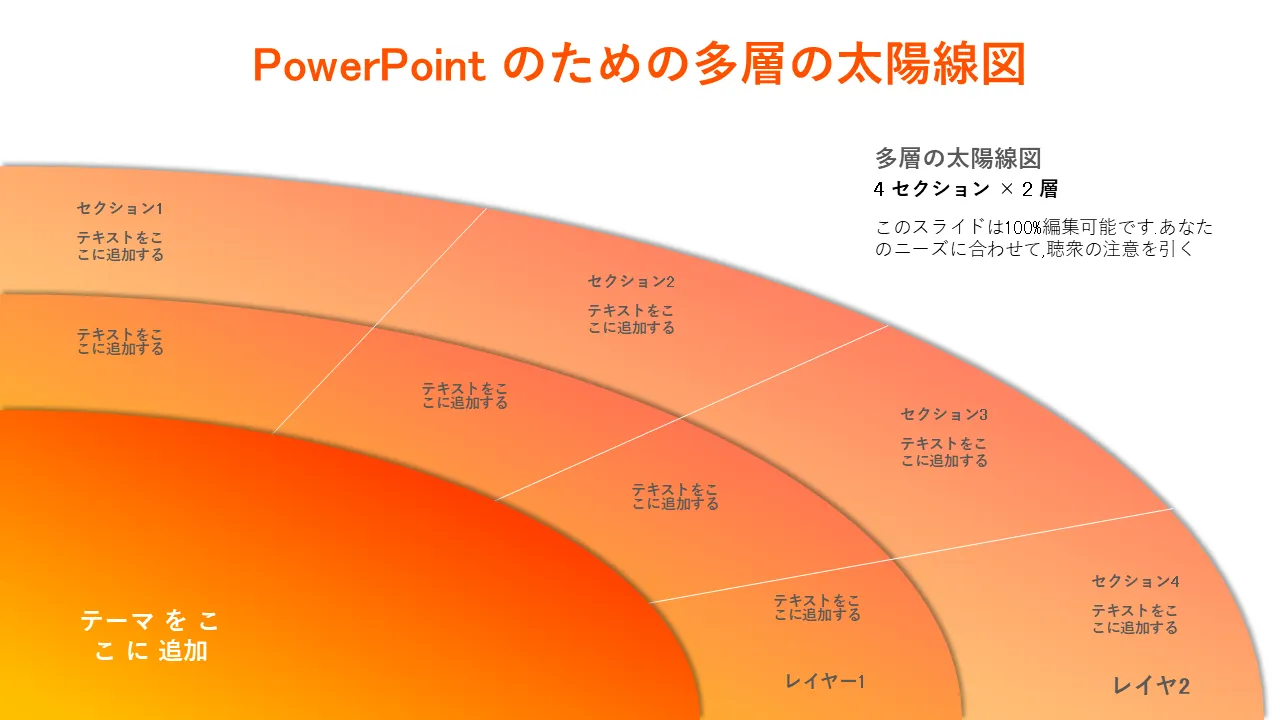PowerPoint用の多層太陽光線図 プロフェッショナルプレゼンテーション用のPowerPointのテンプレートの特徴