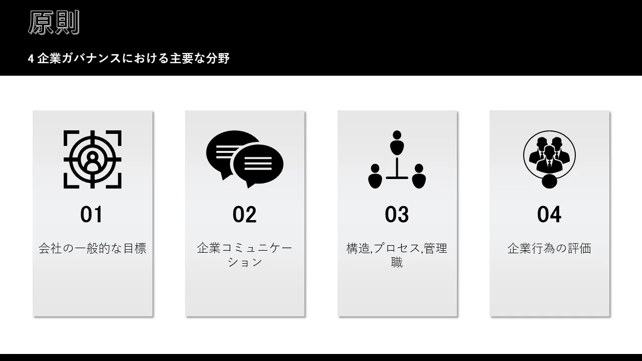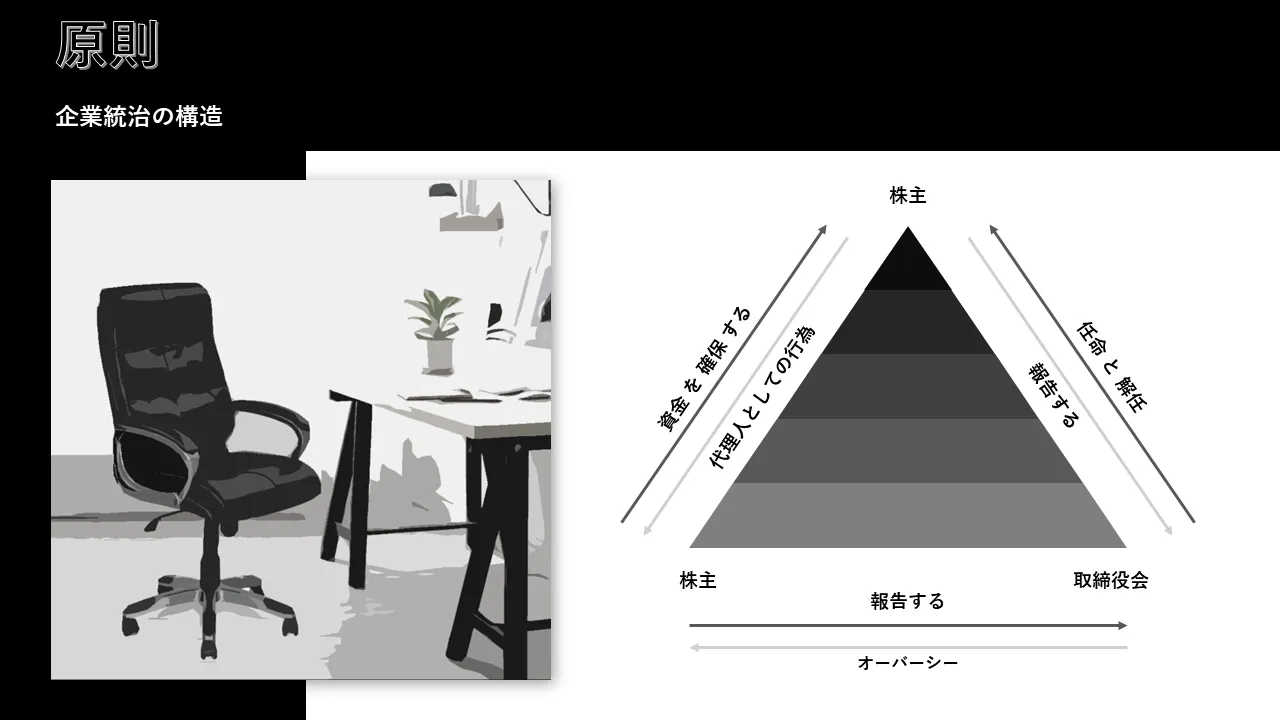 - 取締役会の役割と責任を視覚的に階層化した、事前に設計されたガバナンス フレームワークのスライド