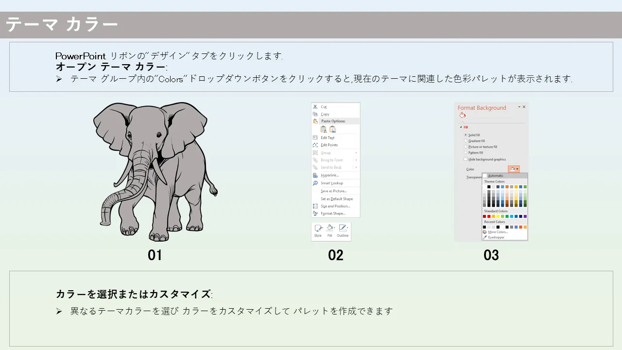 - 一貫したストーリーテリングを実現するすべてのスライドにわたる一貫したデザイン言語