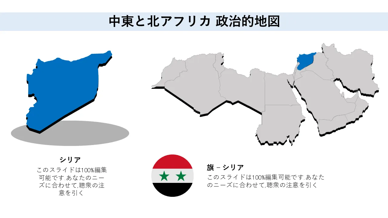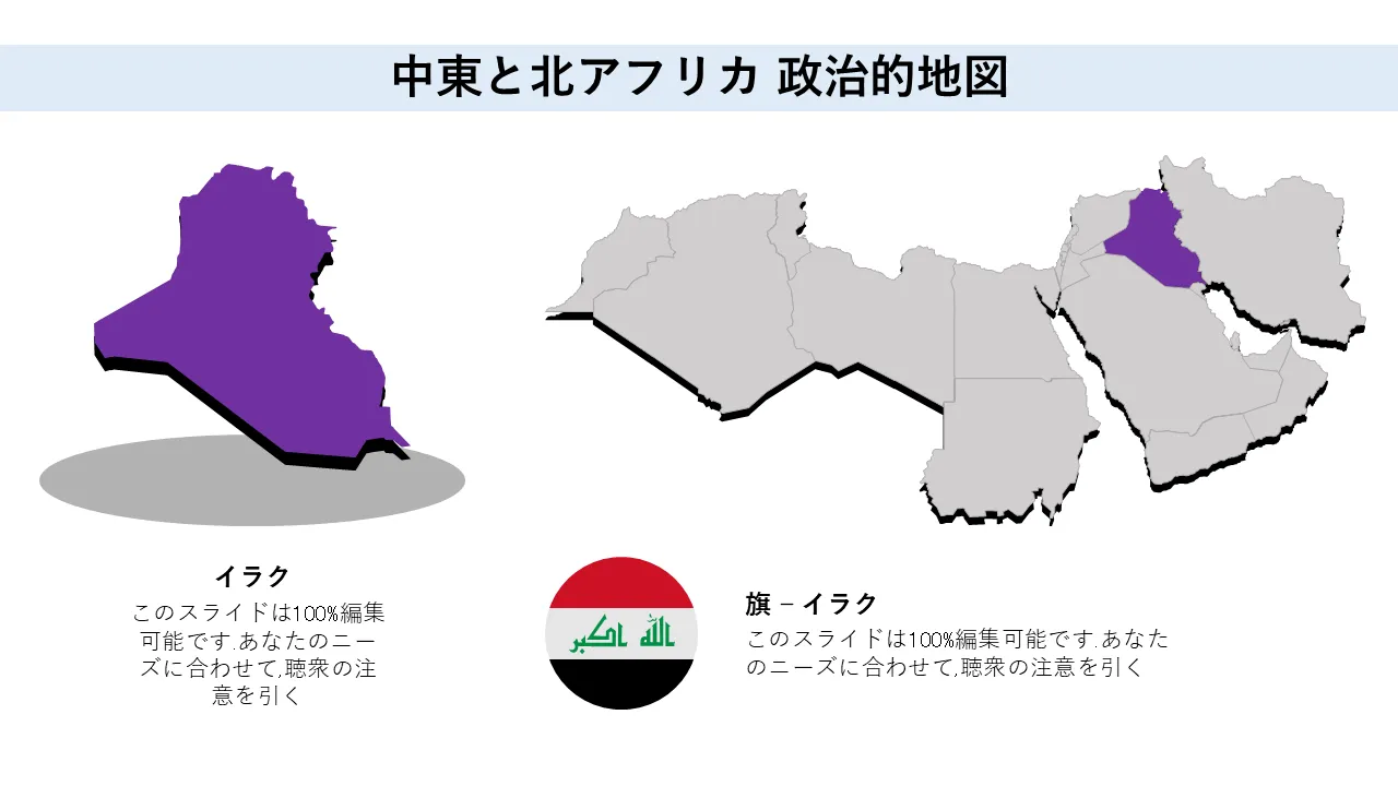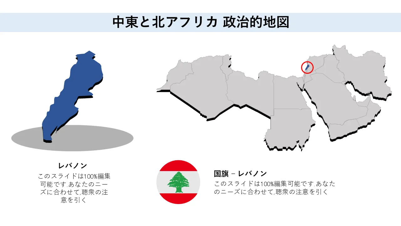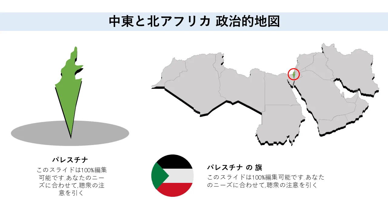 プロフェッショナルプレゼンテーション用の中東および北アフリカの政治概要地図PowerPointのテンプレートの特徴
