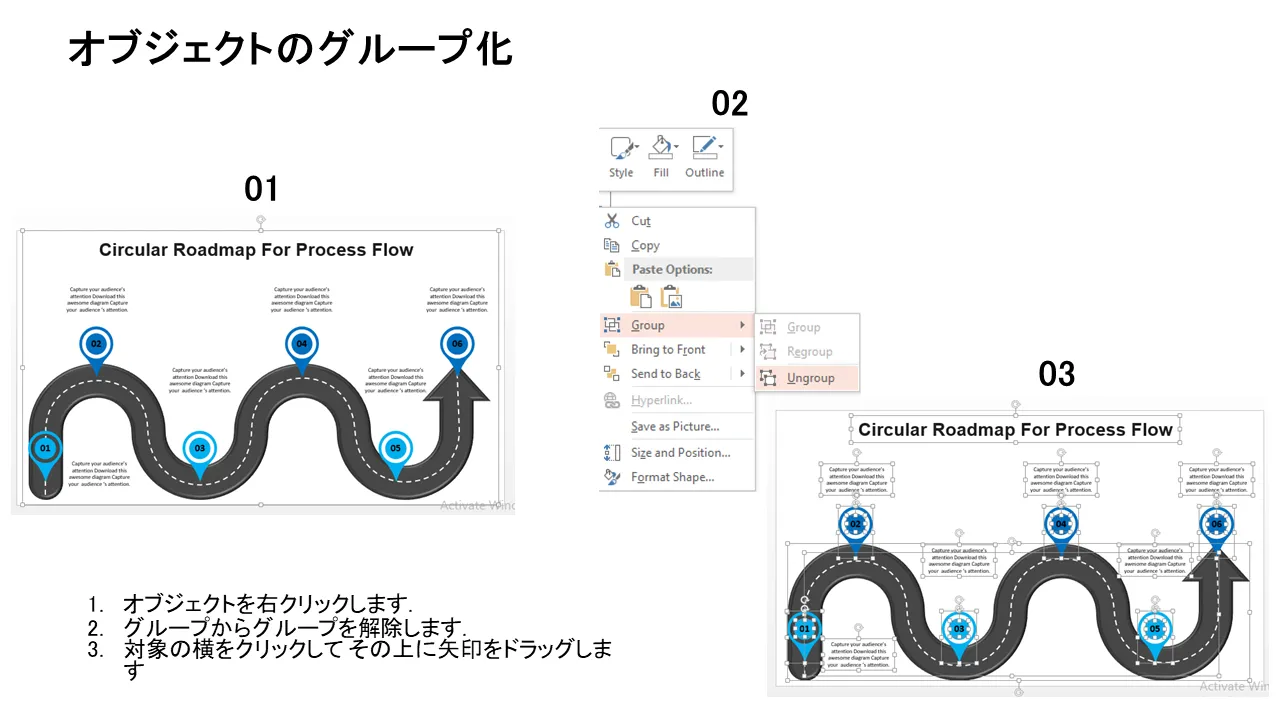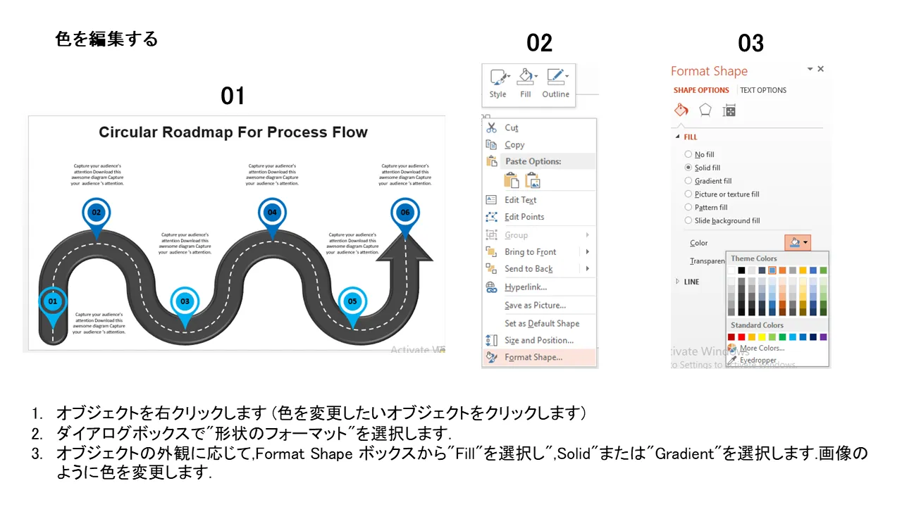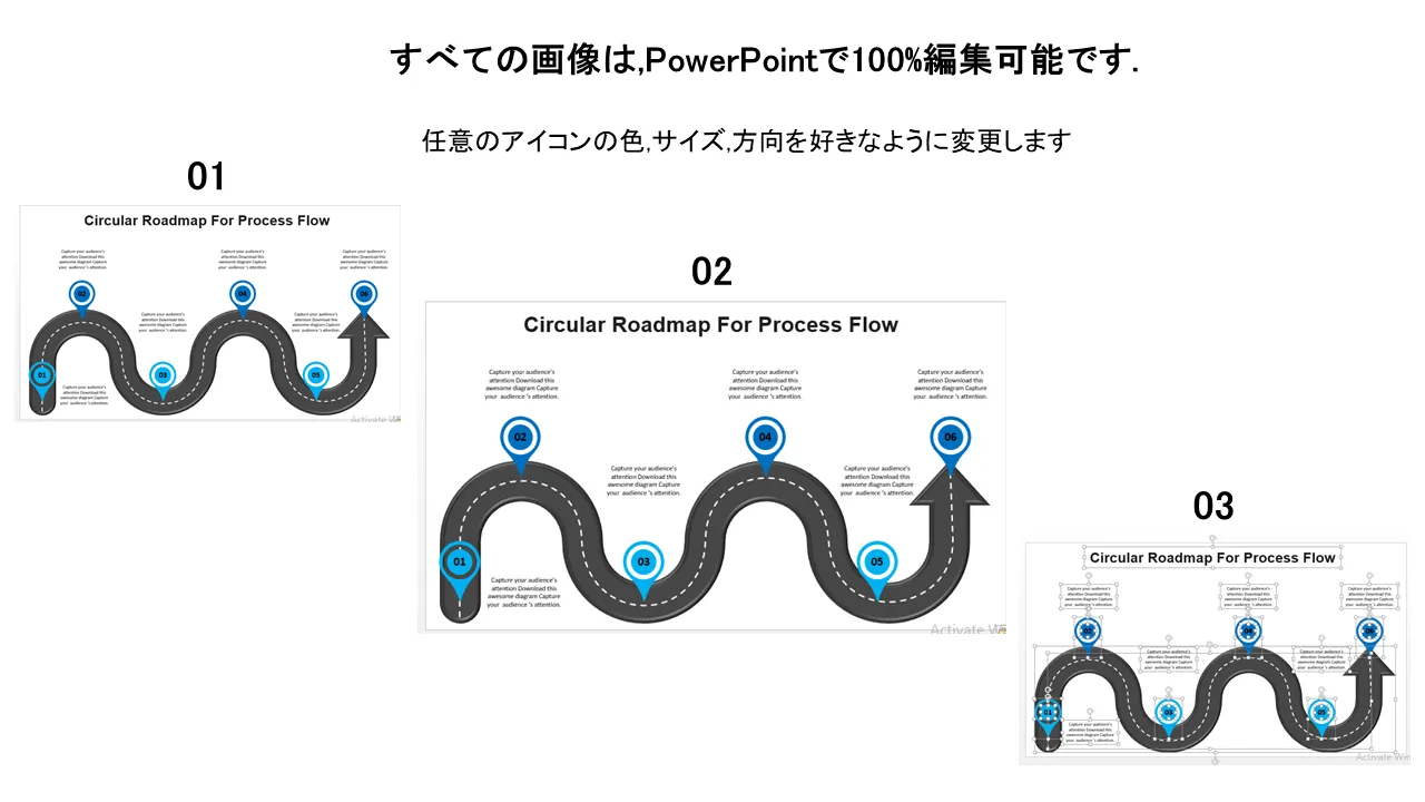 循環プロセス フロー ロードマップ PowerPoint テンプレートの説明