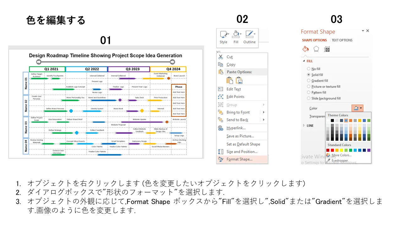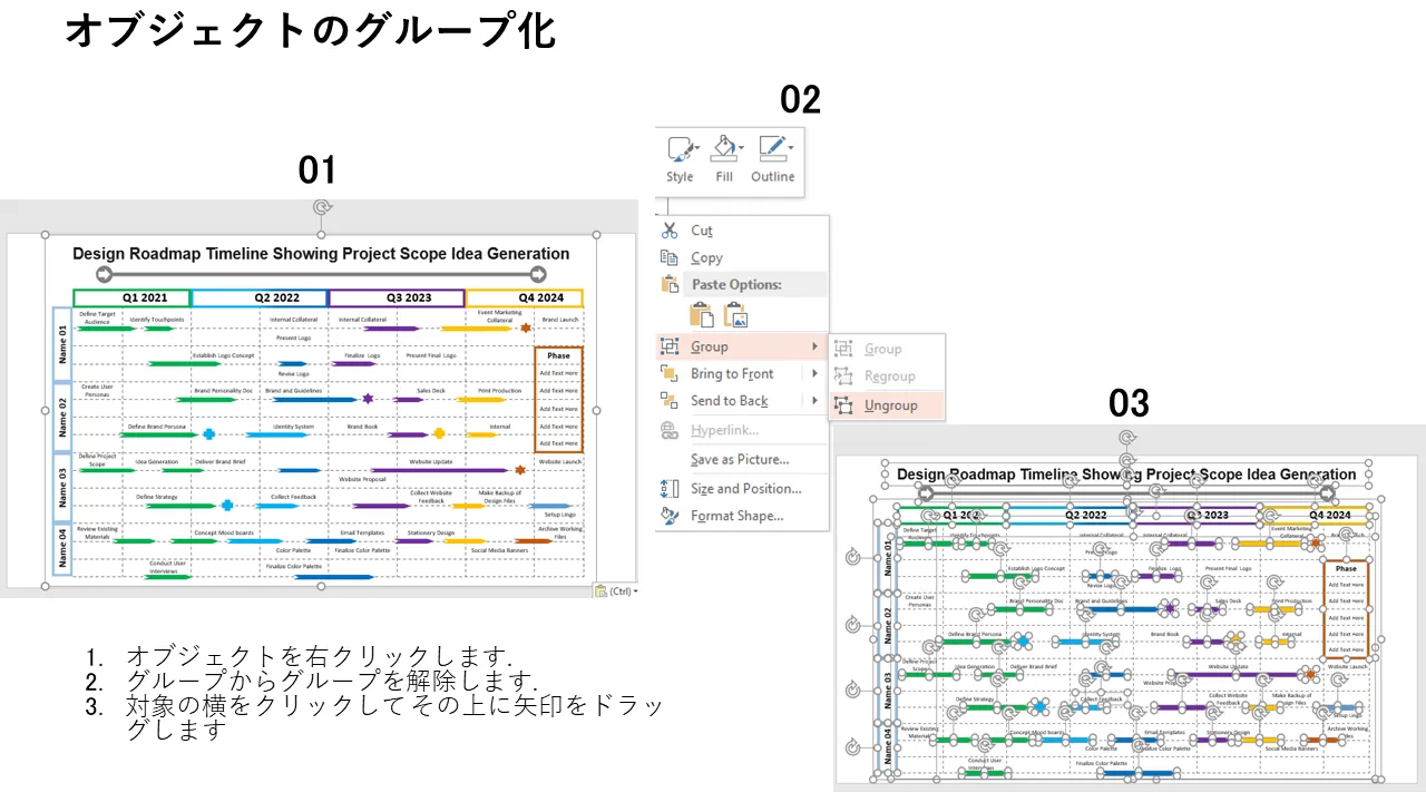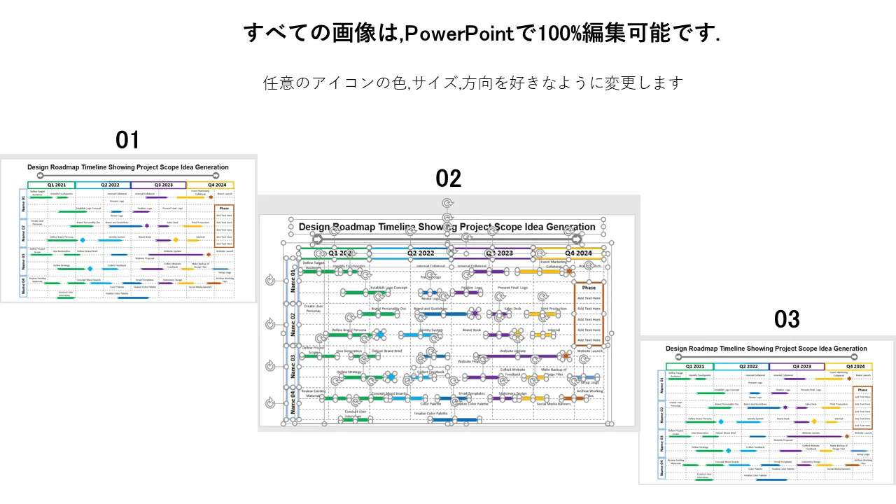 プロジェクト スコープ ロードマップ タイムライン PowerPoint テンプレートの説明