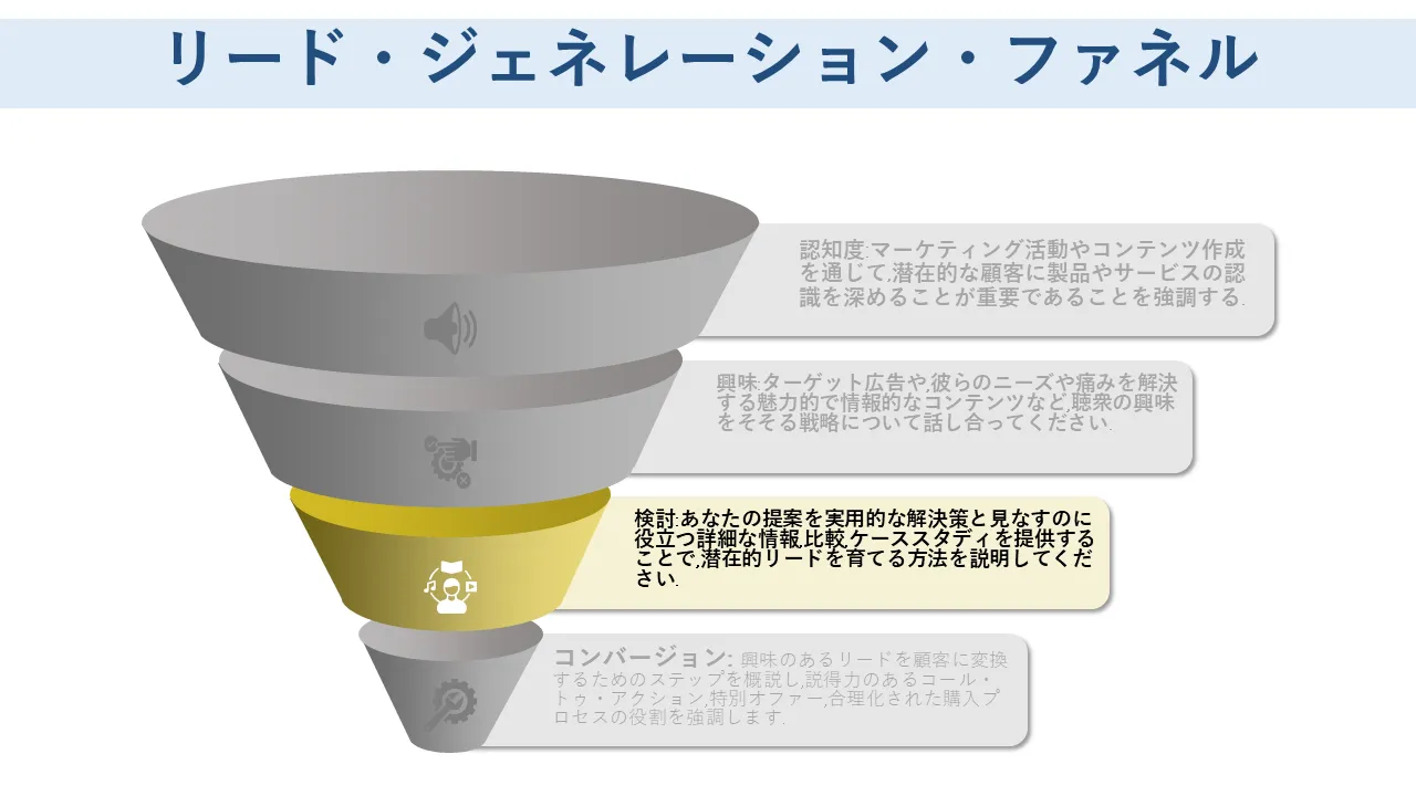 リードジェネレーションファネルPowerPoint プロフェッショナルプレゼンテーション用のPowerPointのテンプレート