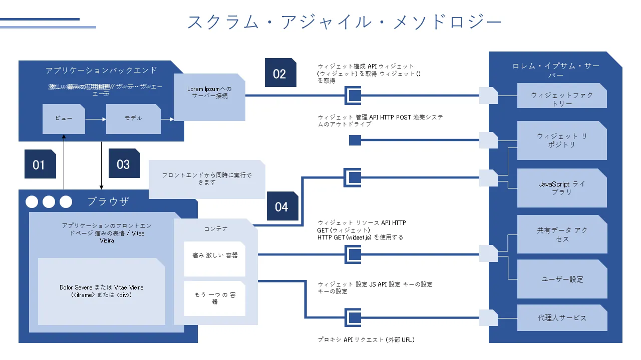 スクラムアジャイル手法のハイレベル図 プロフェッショナルプレゼンテーション用のPowerPointのテンプレート