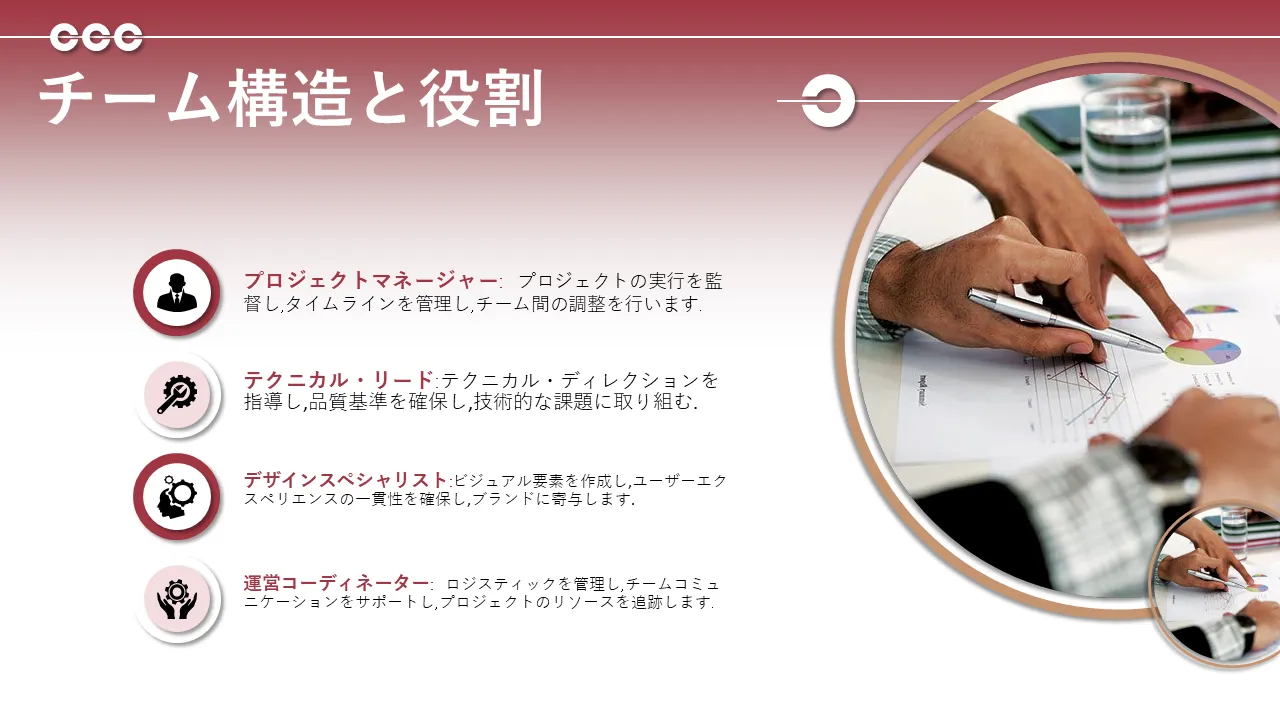 - 一貫したストーリーテリングを実現するすべてのスライドにわたる一貫したデザイン言語